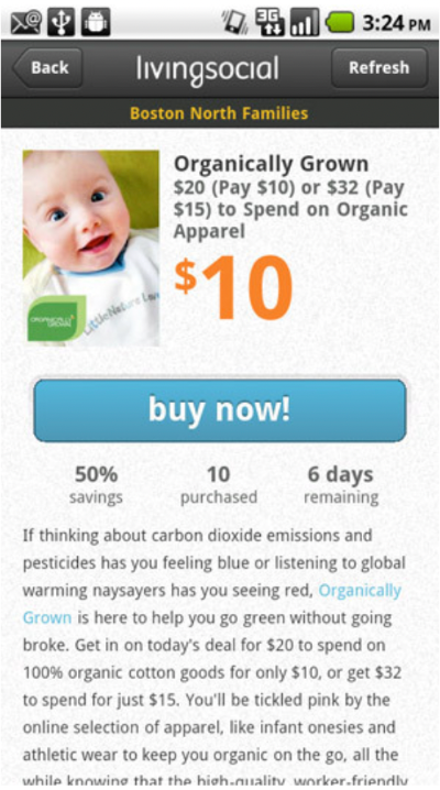 LivingSocial은 몇 가지 모바일 사용 적합성 가이드라인에 위반합니다.