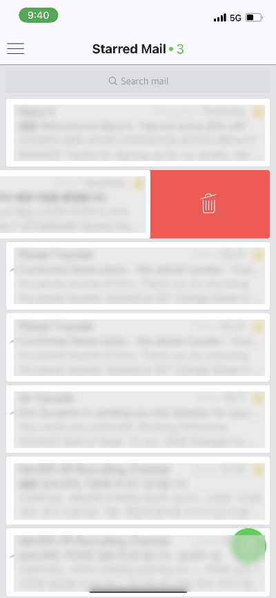 예를 들어 ‘네이버 메일’앱은 중요 메일함에서 콘텐츠를 스와이프 할 경우 삭제 또는 다른 옵션 확인 없이 바로 삭제됩니다.