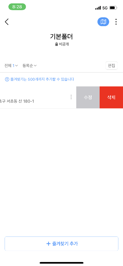 예를 들어 ‘카카오 맵’에서 저장한 장소를 삭제하기 위해 스와이프 할 때 선택한 장소의 이름이 완전히 가려지게 되어 올바르게 선택했는지 확인이 어렵게 됩니다.