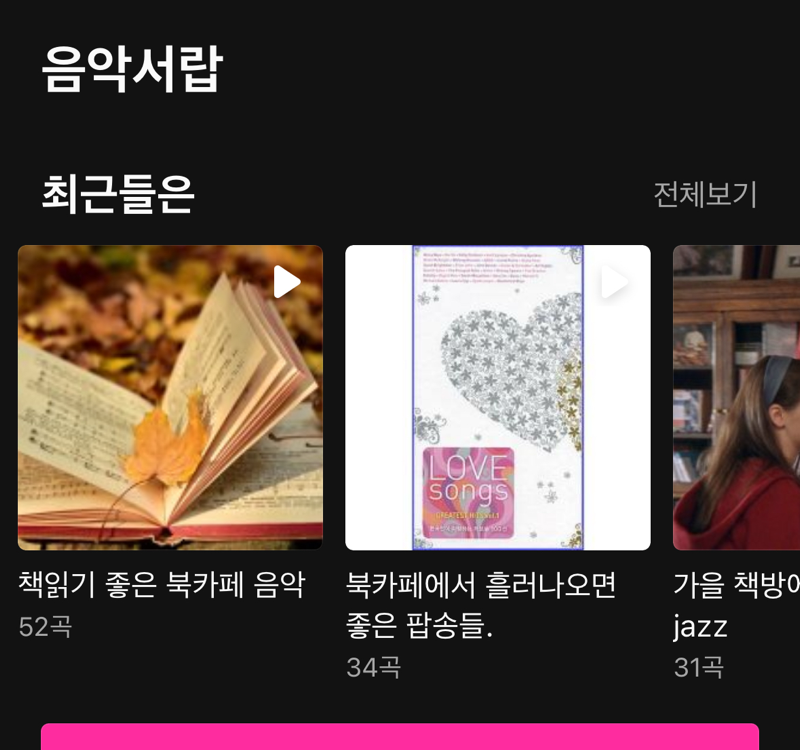 노래를 들을 땐 주로 플레이리스트를 검색해 듣는다. 플랫폼은 멜론을 이용하는데 여기엔 멜론 DJ라는 사람들이 자기 취향대로 마음껏 묶어둔 플레이리스트가 많이 있다. 평소 검색하는 키워드는 늘 “신나는 팝송”이지만, 책을 읽을 땐 “북카페”, “독서” 등을 검색한다. 그러면 갖가지 꾸러미들이 나온다.