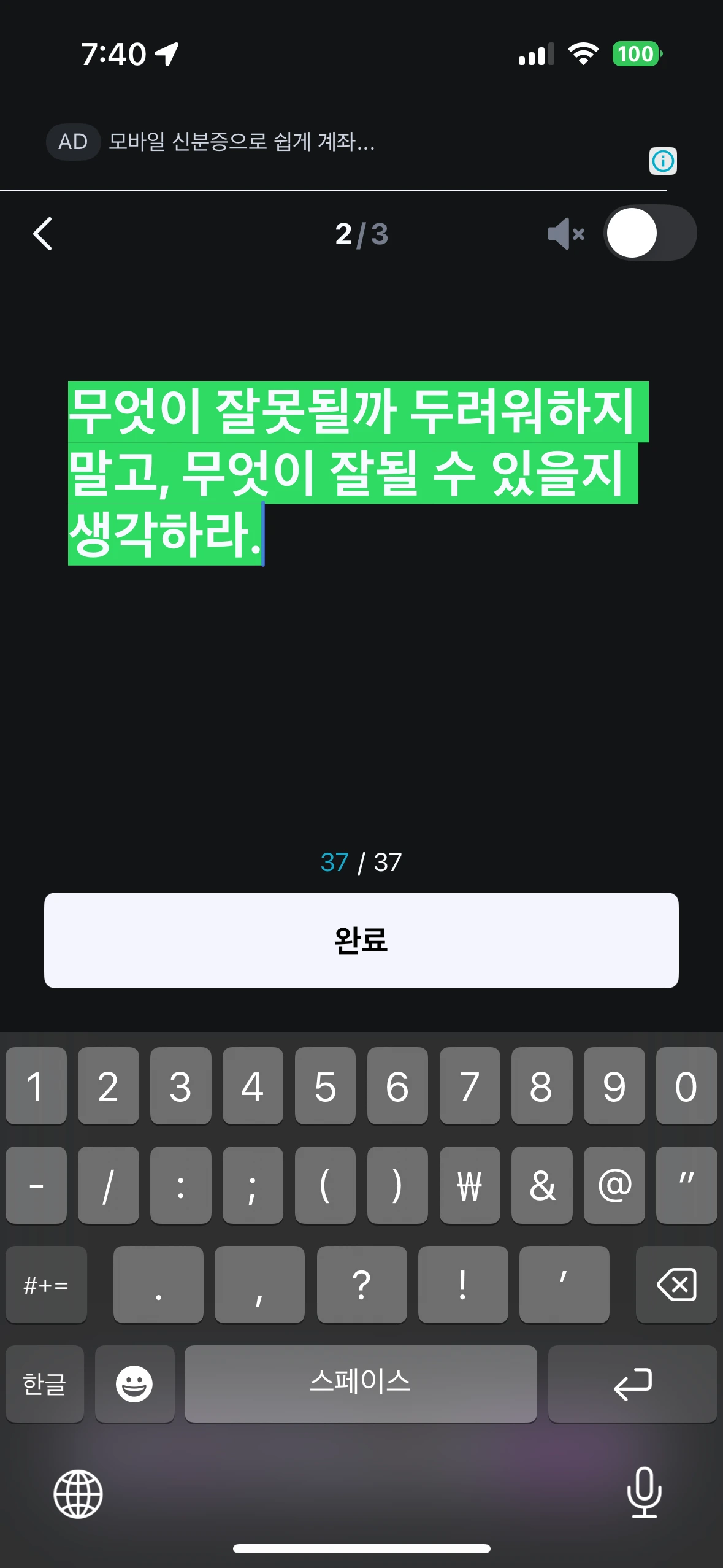 '알라미'라는 어플을 쓴다. 내가 잘 자는지 나의 뒤척임과 소리 등을 통해 파악해 주고, 수면 시간을 기록해 준다. 설정해 둔 시간에 맞춰 알람도 울리는 알람 앱이다. 그런데 특이한 건 알람을 끄는 방법이다. 수학 문제를 풀 수도 있고, 도형의 위치를 맞추는 기억력 게임이나 따라 쓰기를 할 수도 있다. 내가 선택한 테마는 '따라 쓰기'다. 어떤 문장을 따라쓸 건지 그 테마를 결정할 수 있다. 동기부여, 자기 확언, 사랑, 학업, 고난이도 등의 테마가 있고 나는 동기부여와 자기 확언 테마를 설정해 두었다. 총 443가지 문장 중 하나가 나와서 그걸 제대로 총 3번 잘 따라서 쓰면 알람을 끌 수 있다. 이때 나오는 문장들은 억지로라도 눈뜨자마자 날 웃게 한다.
