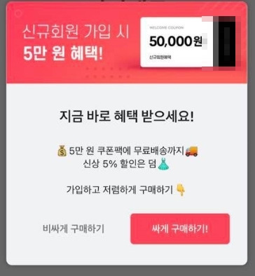 이쯤 되면 이 팝업에서 문제는 '가입 또는 구매를 한다/안 한다'가 아닙니다.