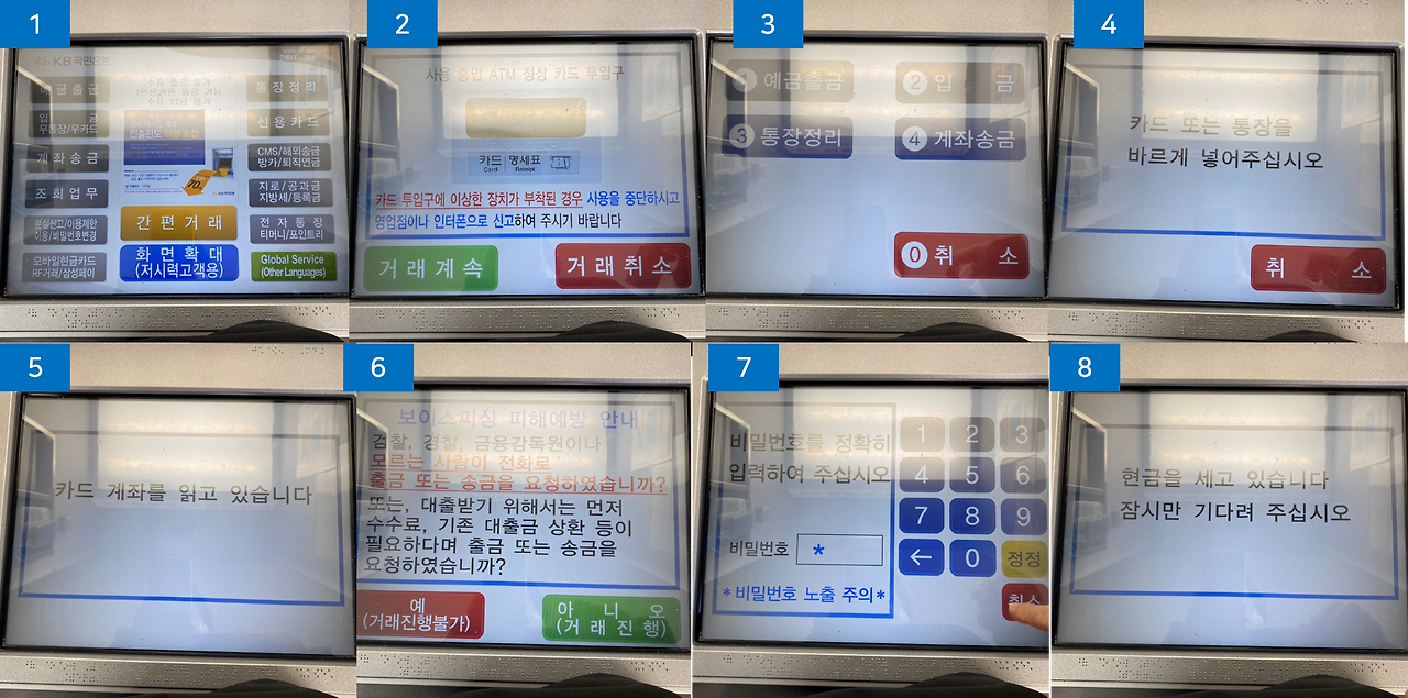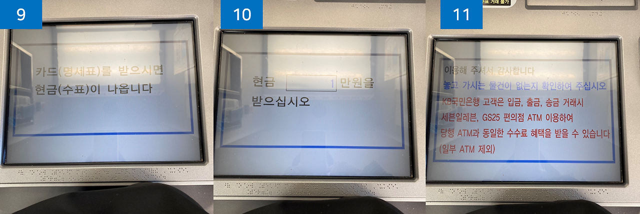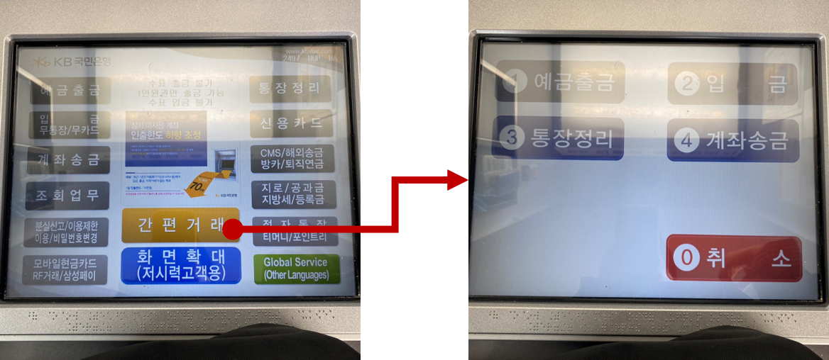 이미 많은 ATM에서 이런 큰 글씨, 심플한 구성을 제공하고 있답니다. 다음은 KB 국민은행 AMT입니다.
