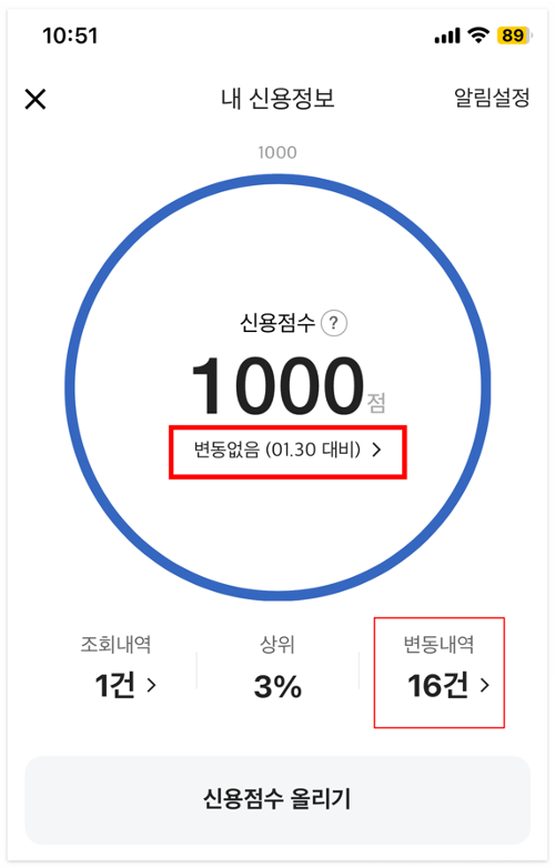 먼저 신용 점수와 연관된 신용 정보라는 것이 있고, 거기에 변경이 있었다는 사실을 밝혔습니다. 이후 신용 점수에까지 변경이 있는지 없는지는 모르겠지만, 한 번 와서 확인해 보는 게 어떤지를 권유했습니다.
