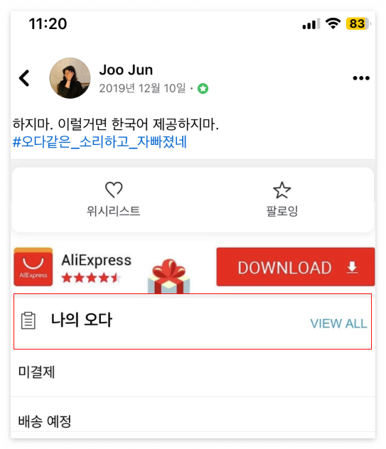 다행히도 지금 알리의 텍스트 현지화는 전보다 훨씬 나아졌습니다. 마케팅 비용으로 1000억에 마동석/탕웨이에 유튜버, 인플루언서 광고까지 들이부어서 사람들을 잔뜩 불러모았는데, 앱이 계속 그 모양이면 안되지 않겠습니까?