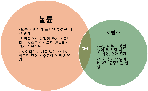 개인적으로 이런 치환은 불륜(不倫)이란 한자어가 어렵다고 이제부터 그걸 '로맨스'라고 부르겠다는 것과 다름없다고 생각합니다. 아니, 이봐요 누구 마음대로 불륜이 로맨스야?(네이트판 결시친 본처 말투)