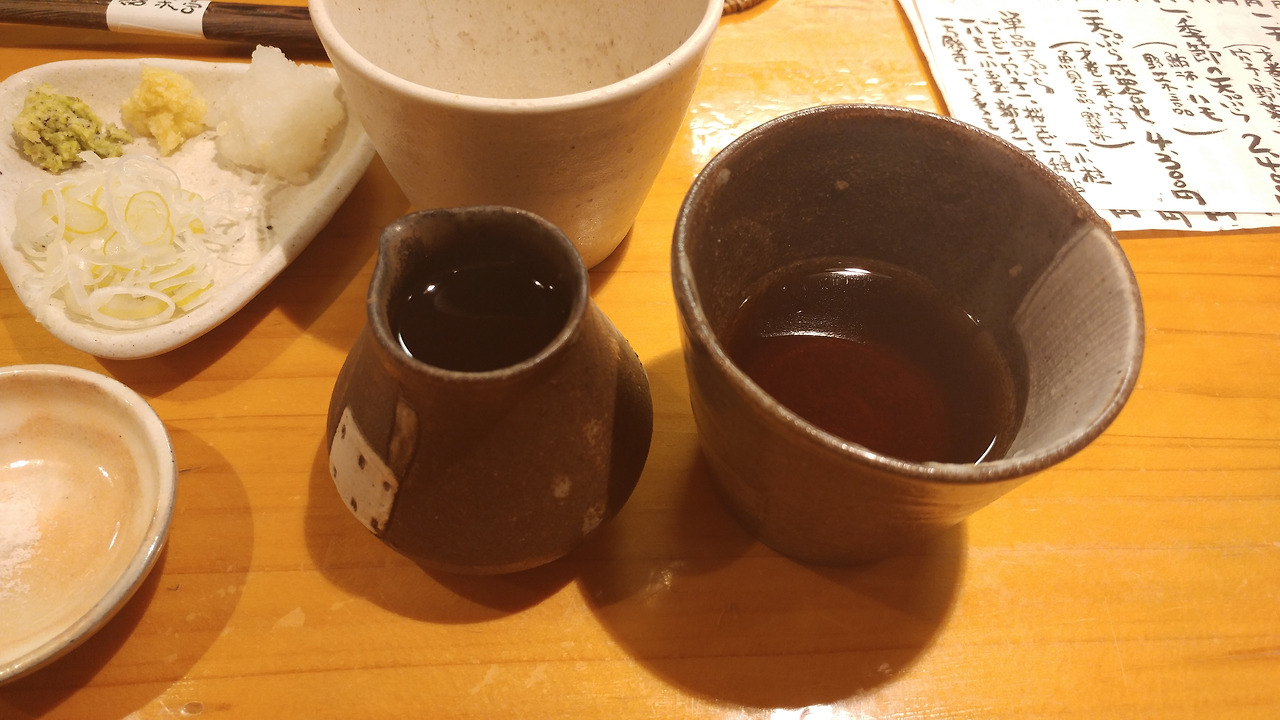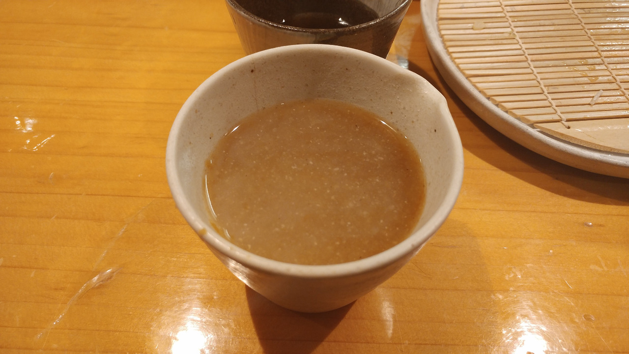 소바유를 부어서 남은 쯔유를 마셨는데