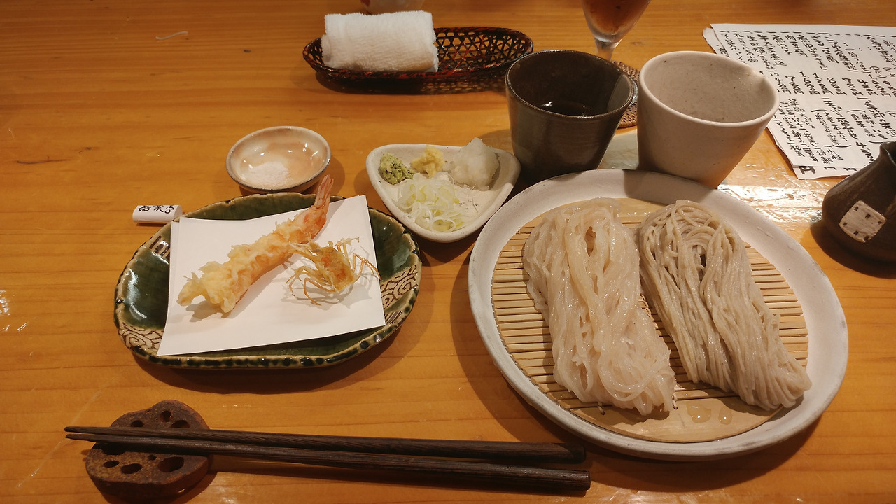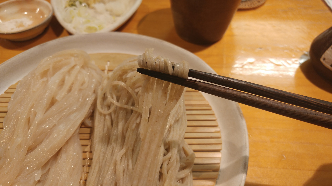 소바도 얇은 소바입니다. 메밀 함량이 높은데 거칠거칠하면서도 가벼운 맛이에요.