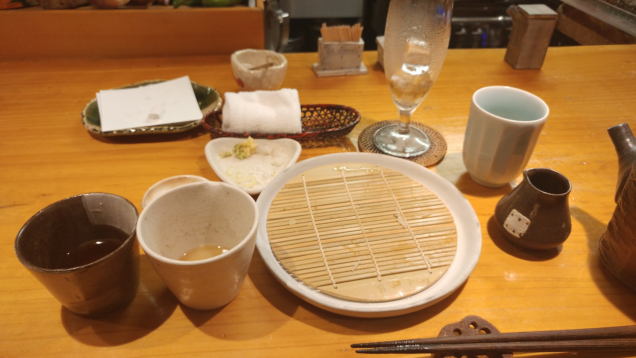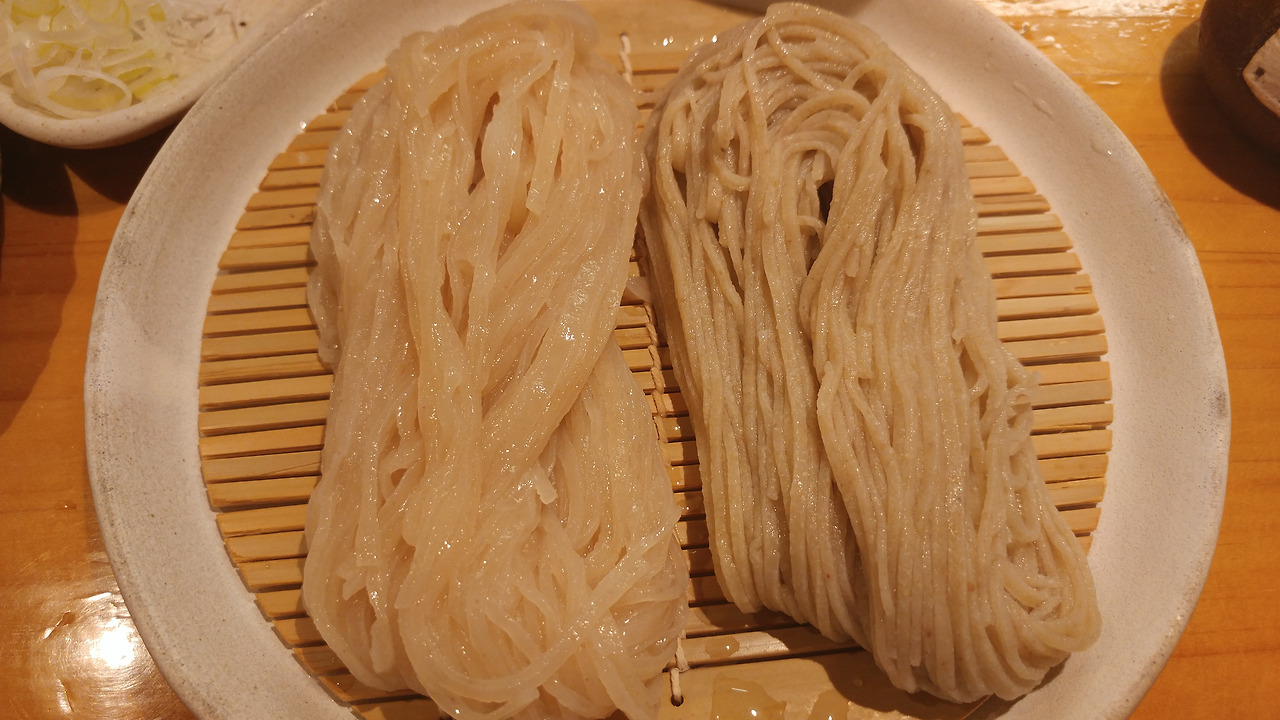 제가 시킨 것은 히야무기 반절과 니하치 소바 반절 세트입니다.