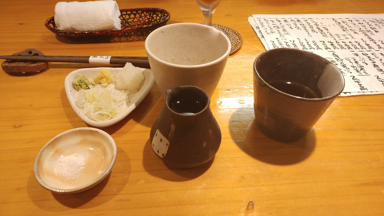 저녁엔 가벼운 오쯔마미 안주들을 파는데 손님들이 여러가지를 시켜서 드시는 듯했어요. 점원이 "음료는?"이라고 해서 저도 모르게 "우롱차"라고 해버렸습니다.