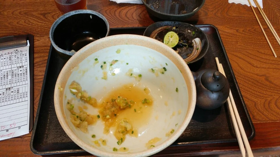 결국 남김없이 다 먹었습니다. 그러니까 오뎅 2개, 맛간장 버섯밥, 튀긴 가지, 그리고 생간장 우동.