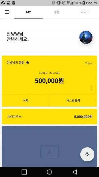 카카오톡 아이디로 가입을 시작하여 연락처, 휴대폰 인증, 신분증 확인을 쫘라라~ 스르륵 ~해나가니까 마지막에 도착한 메인 화면에서 내 카카오톡 대화명을 만나게 되었다.