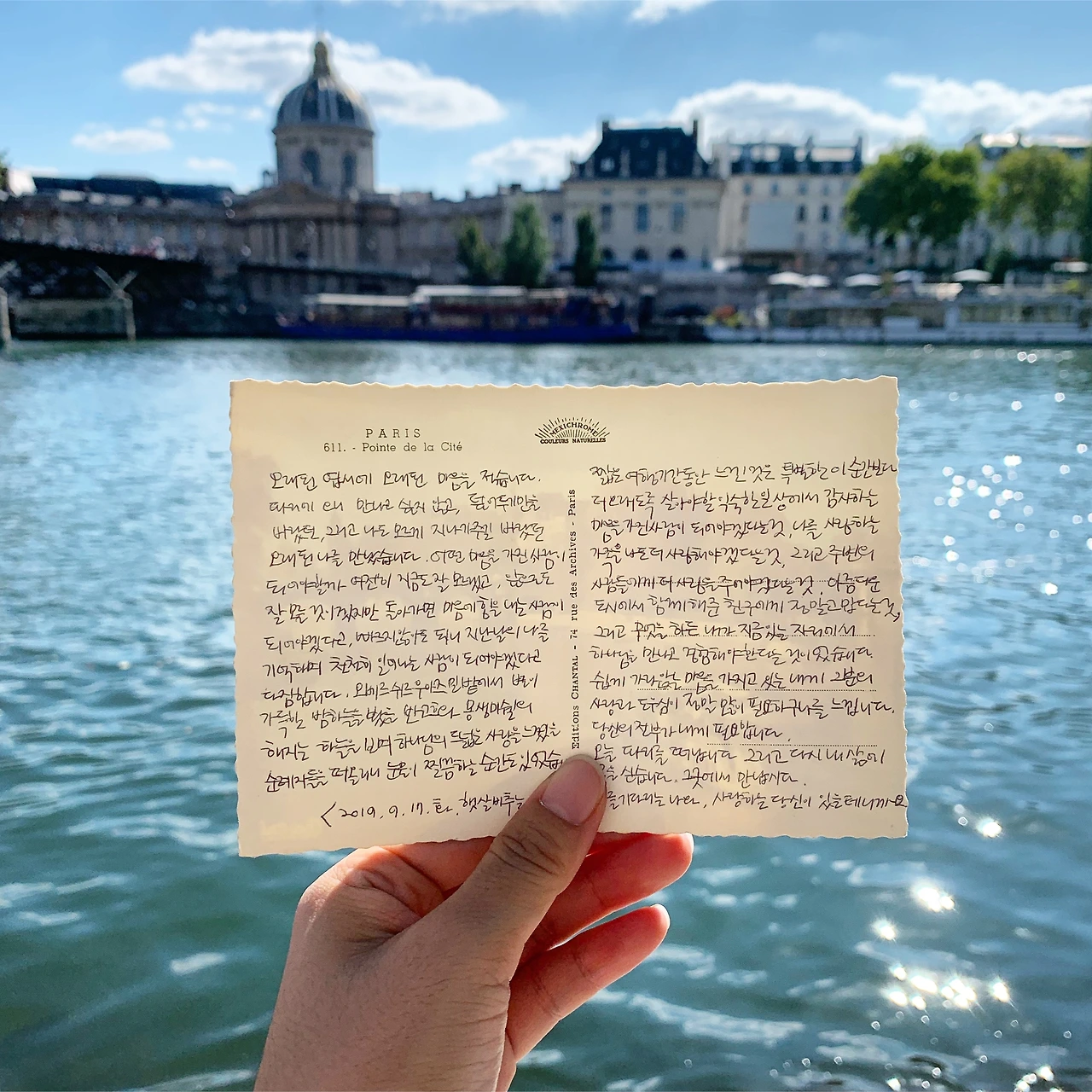 오래된 엽서에 오래된 마음을 적습니다. 파리에 오니 만나고 싶지 않고, 덮어두기만을 바랐던, 그리고 나도 모르게 지나가 주길 바랐던 오래된 나를 만났습니다. 어떤 마음을 가진 사람이 되어야 할까 여전히 지금도 잘 모르겠고 앞으로도 잘 모를 것이겠지만 돌아가면 마음에 힘을 내는 사람이 되어야겠다고, 빠르지 않아도 되니 지난날의 나를 기억하며 천천히 일어나는 사람이 되어야겠다고 다짐합니다.