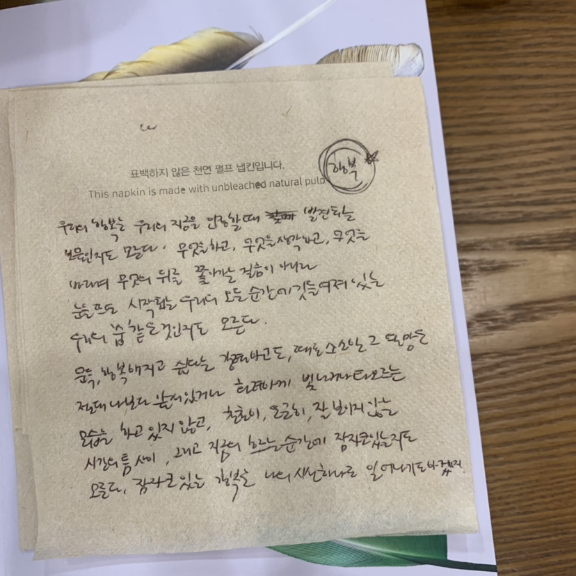 단숨에 냅킨에 끄적였고 다시 고쳐 써본다.