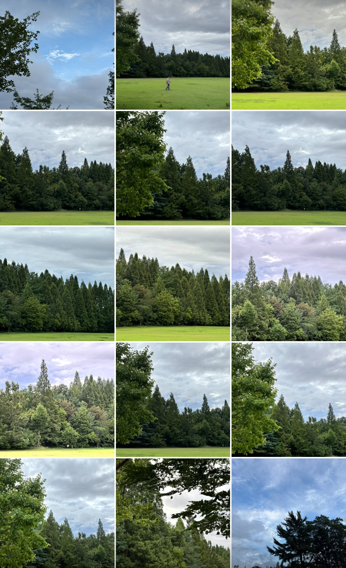 우뚝 선 나무 무리를 보니 자연스레 하늘을 올려다보게 되었다. 비 온 뒤 하늘은 꽤나 다채롭다. 고개를 돌릴 때마다 다른 하늘의 풍경은 어지러움 속에서도 질서를 유지한다. 파란 하늘과 회색 하늘, 하얀 구름과 먹색 구름, 구름 한 점 없는 곳과 구름으로 가득 차 처음 보는 하늘의 색을 선사한다. 점을 찍고 도망가 버린 듯한 구름과, 떠나는 길의 자취를 진득하게 남기는 붓자국 같은 구름. 이 하늘에 펼쳐지는 다양한 모습은 언제나 신의 묘수를 만끽할 수 있는 변주곡.