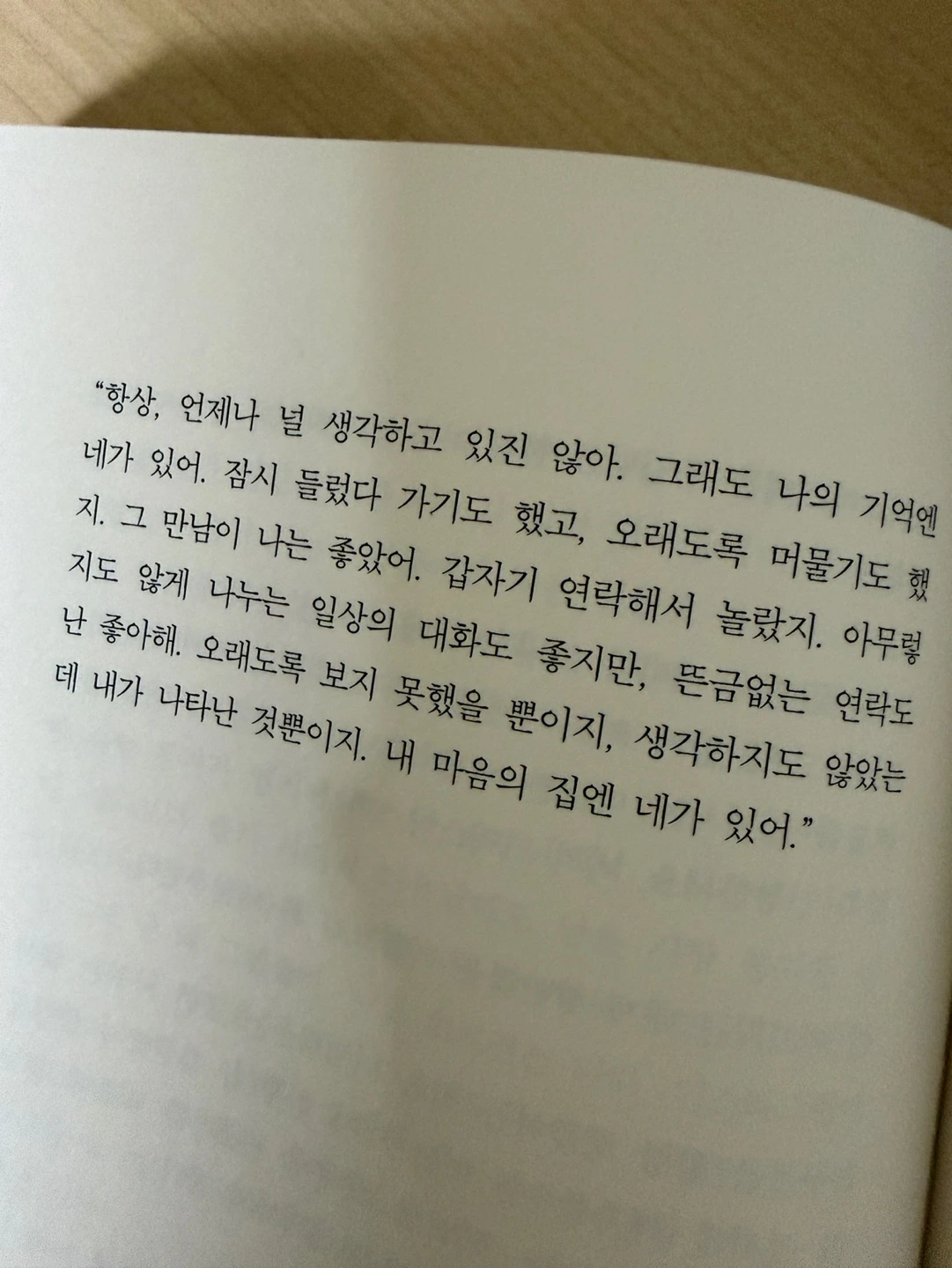 뒤늦게 내 출간소식을 알고 허겁지겁 주문해서 앉은 자리에서 다 읽었다며 이 구절을 읽고 펑펑 울지 않을 수 없었다 했다. 솔직한 내 마음에 위로를 받았고, 하고픈 말이 한가득이었지만 적는 동안은 이상하게 눈물만 난다 했다.