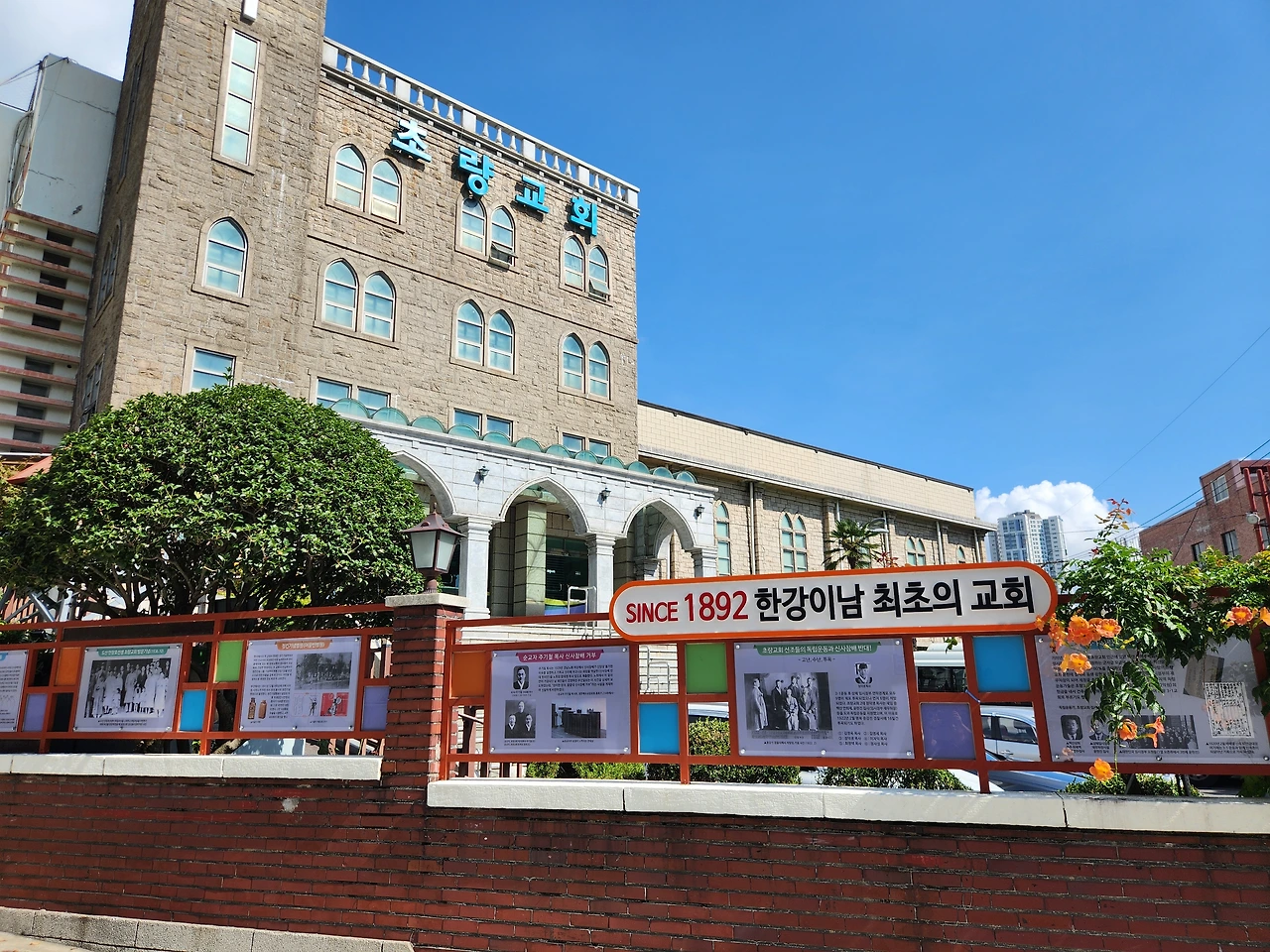 다음으로 걸어서 10분 거리에 있는 초량교회 역사관으로 향했다. 초량교회는 개항시점에 선교사가 세운 교회로 한강 이남에서 가장 역사가 깊은 교회이다. 역사관에 들어서니 계단 복도에 미국, 호주에서 한 달 이상 배를 타고 부산항에 도착하여 인천 등으로 이동한 선교사들의 행적을 게시해 있다. 역사관은 미리예약을 하지 않아 자세한 내용은 다음 기회로 미루었다.