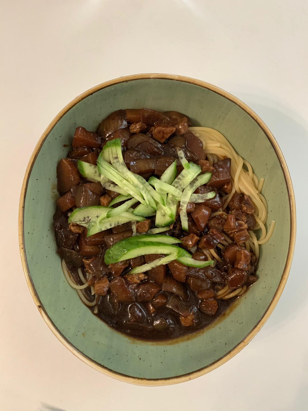 그다음 점심메뉴는 딸내미가 어릴 때부터 좋아하던 엄마표 짜장면.. 작게 자른 감자, 양파, 돼지고기를 짜장과 함께 센 불에 볶아 만든 옛날식 짜장에 스파게티 면을 삶아 데쳐 만든 짜장면인데 아이가 맛있다 맛있다 소리를 연발하며 먹는다. 너무 얇지도 굵지도 않은 스파게티 면을 골라 끓는 물에 올린븐오일 몇 방울과 소금 작은 한 스푼을 넣고 잘 삶아 내면 면이 빨리불지도 않고 제법 먹을만한 짜장면의 면이 된다.
