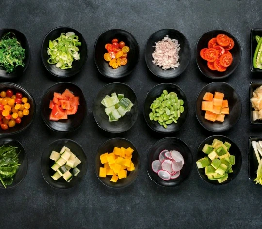 생긴 것도 먹는 법도 비빔밥과 거의 흡사하다 단지 토핑 재료들을 잘게 자르고 채소와 고기들 뿐만이 아니라 생선류, 해산물, 과일 콩류 건과류 등등 취향과 기호에 맞는 선택의 폭이 좀 더 다양하다는 것이 접근성을 도왔던 것 같다.