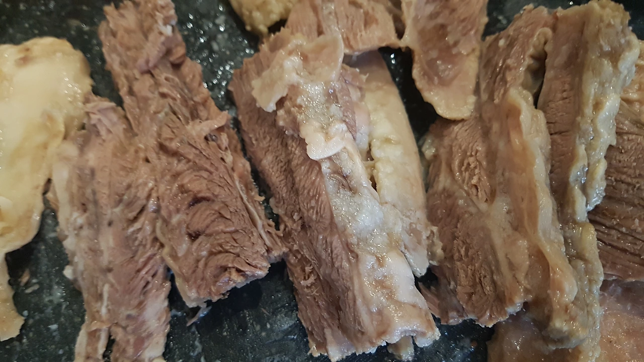 최소한 요정도는 고기가 붙어 있어야 한다. 그렇지 못하다면 다른 부위의 고기를 추가해서 끓이는 수밖에 없다.