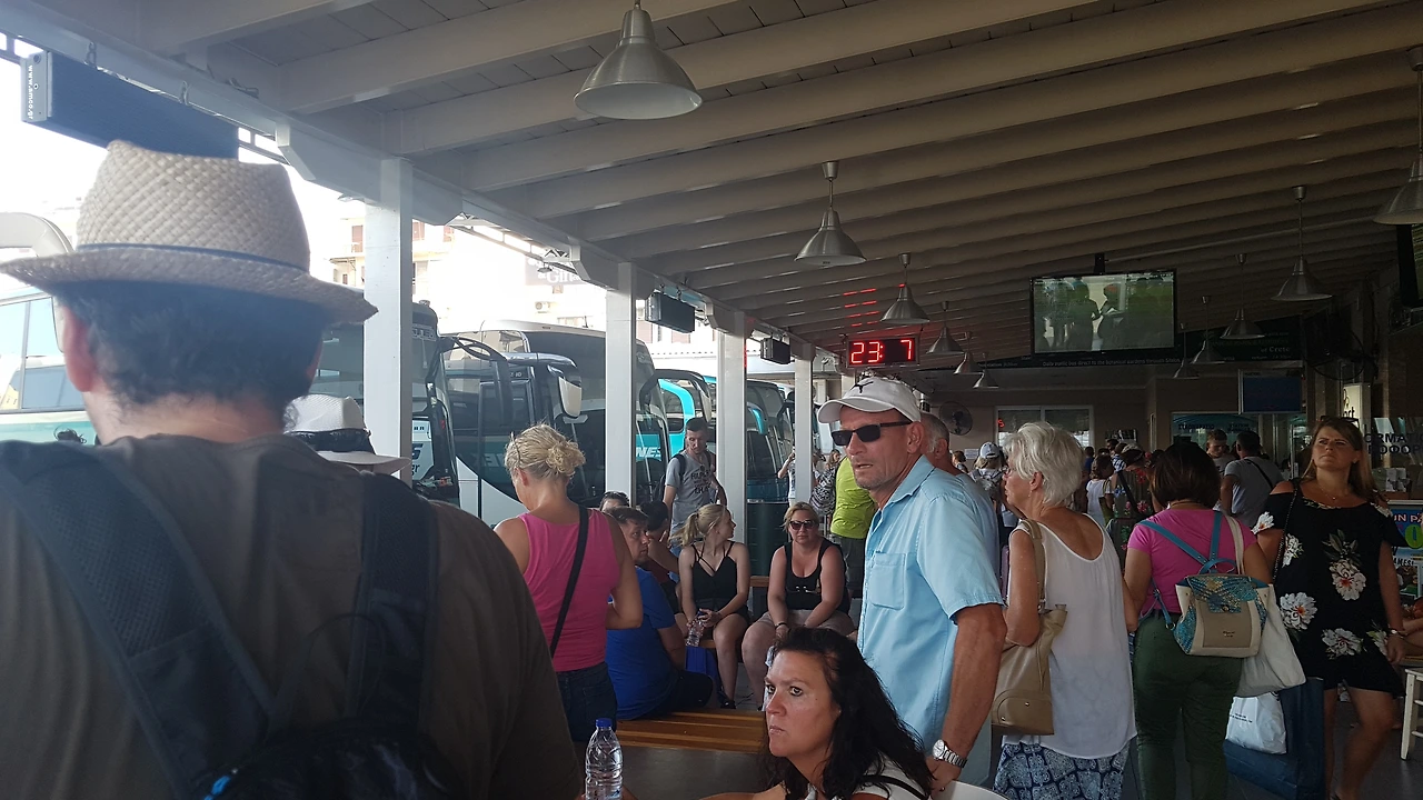 우리뿐만 아니라 크레타 섬의 여러 방향으로 달려가야 할 버스를 기다리던 많은 사람들은 매표소에 가서 무슨 일인지를 물었고...