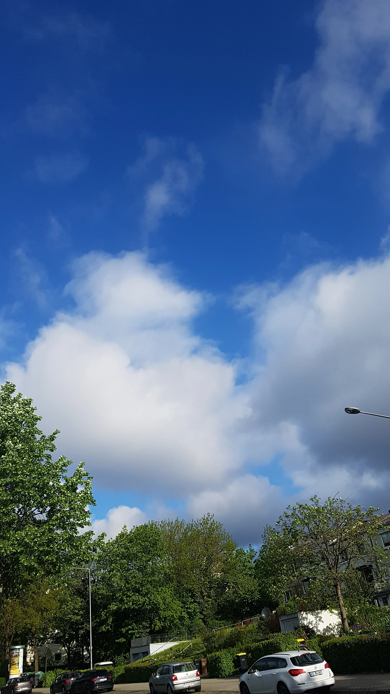 아이들 미술 시간에 쓰는 파란색 물감을 대책 없이 여기저기 뿌려 놓은 듯한 하늘.