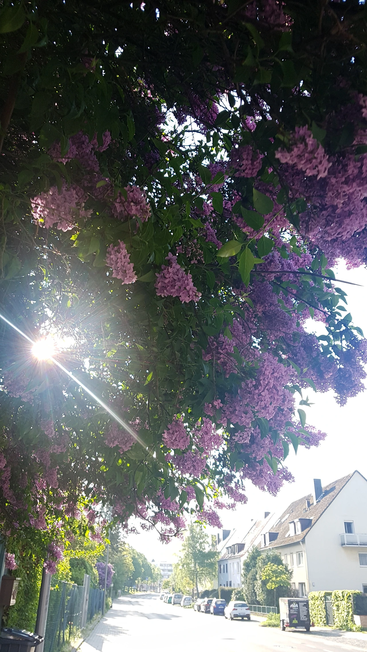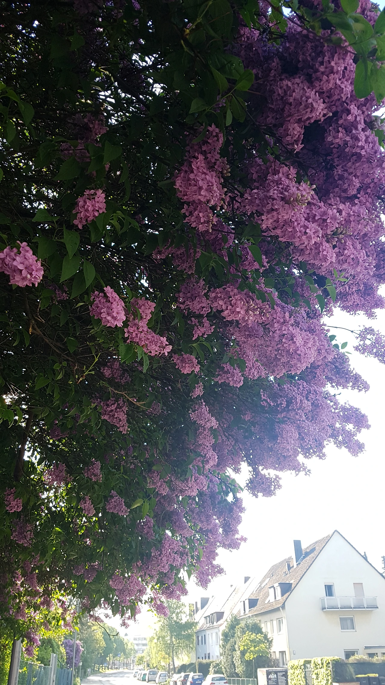 길 건너편 이웃집인 헬가 할머니네 정원은 이제는 때지나 져버린 색색의 튤립 꽃 대신 흐드러지게 핀 보라색 꽃들이 우리를 반긴다.