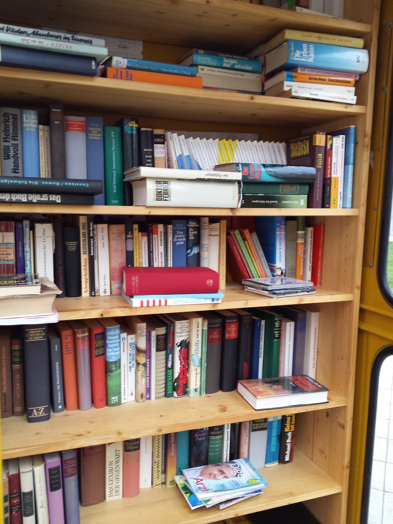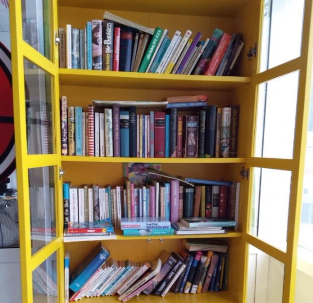 노란 책장이 설치되어 있고