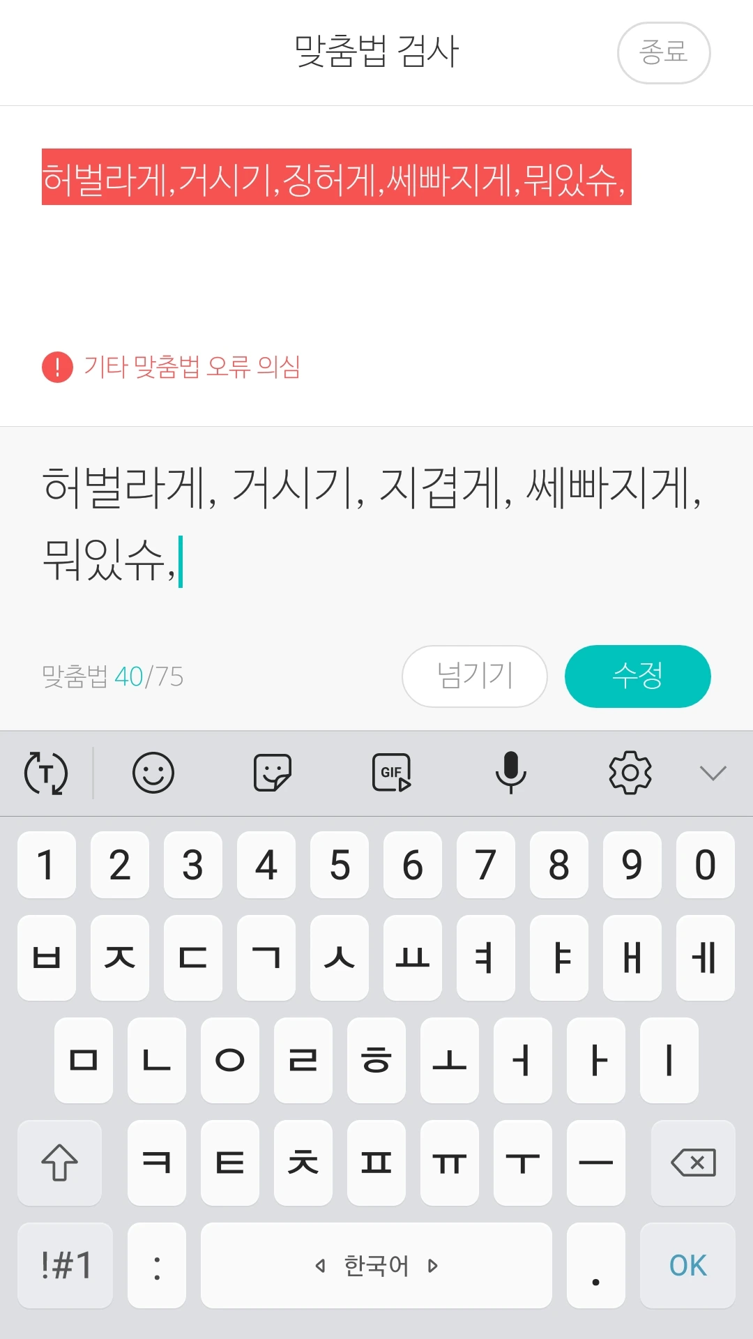그리고 찰떡같은 사투리들도 맞춤법 검사에서 그냥 넘기기를 하고 계속해서 쓰게 될 것이다.
