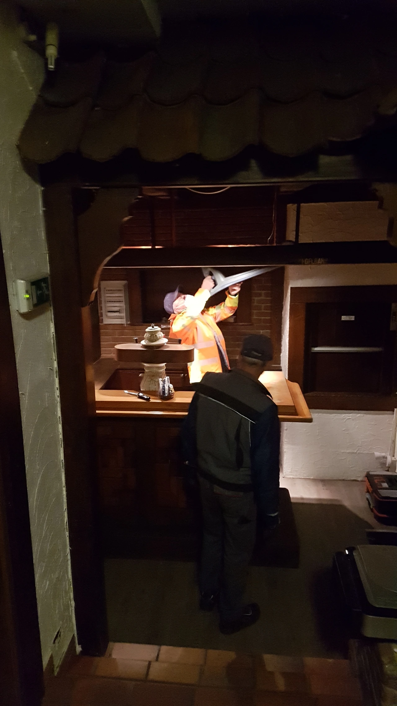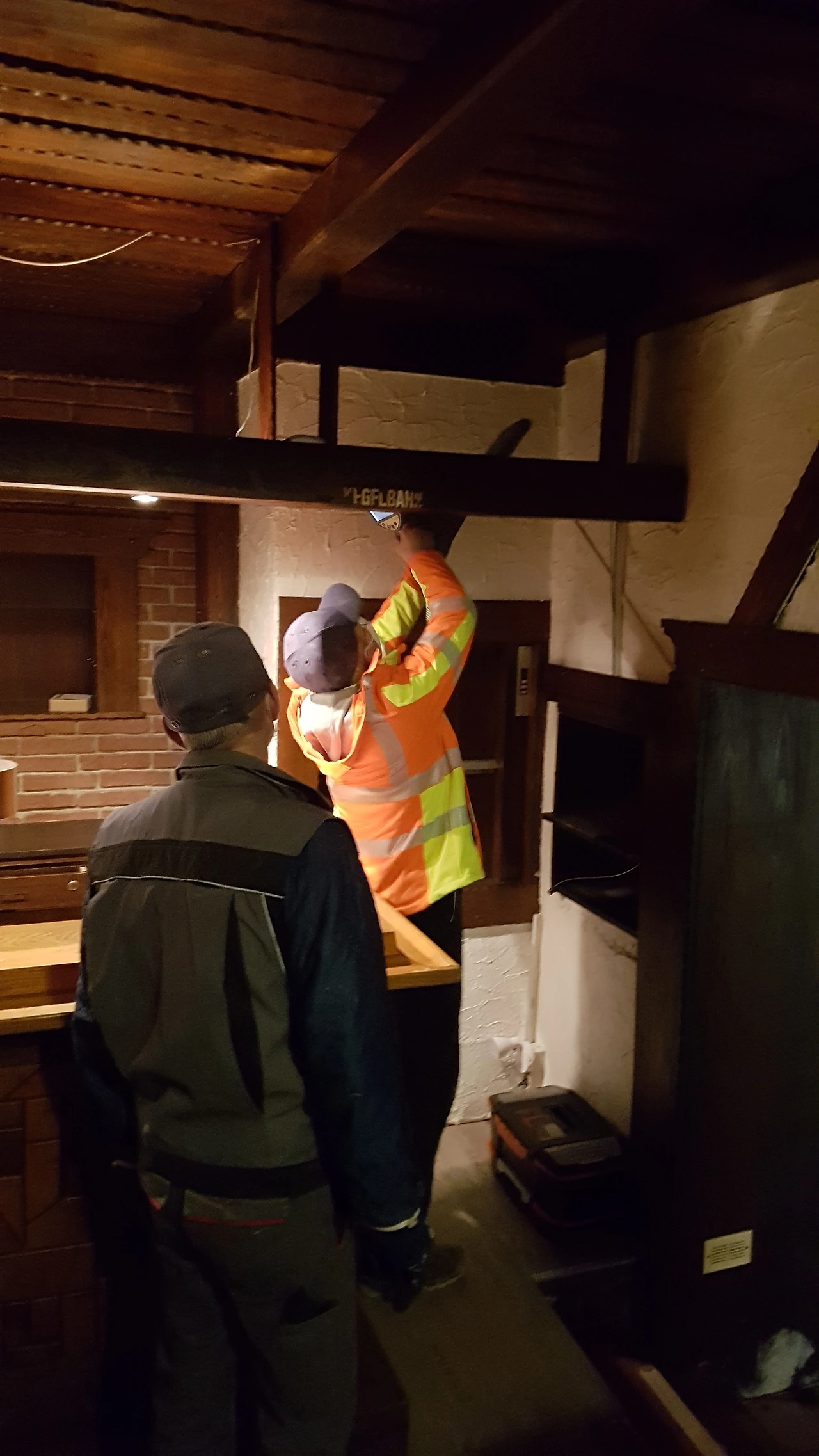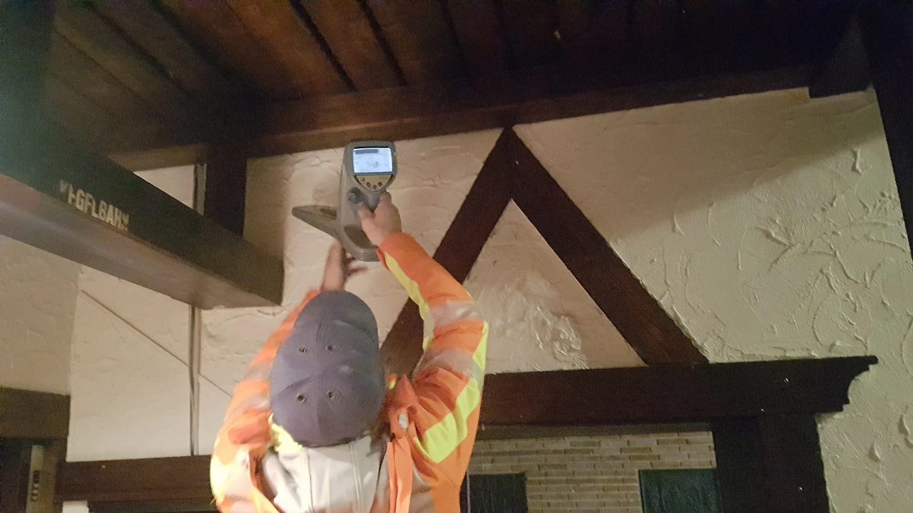 그 팀은 두 명의 기술자가 지하실에 이모저모를 샅샅이 들여다 보고는 기계 하나를 꺼내 들었다.