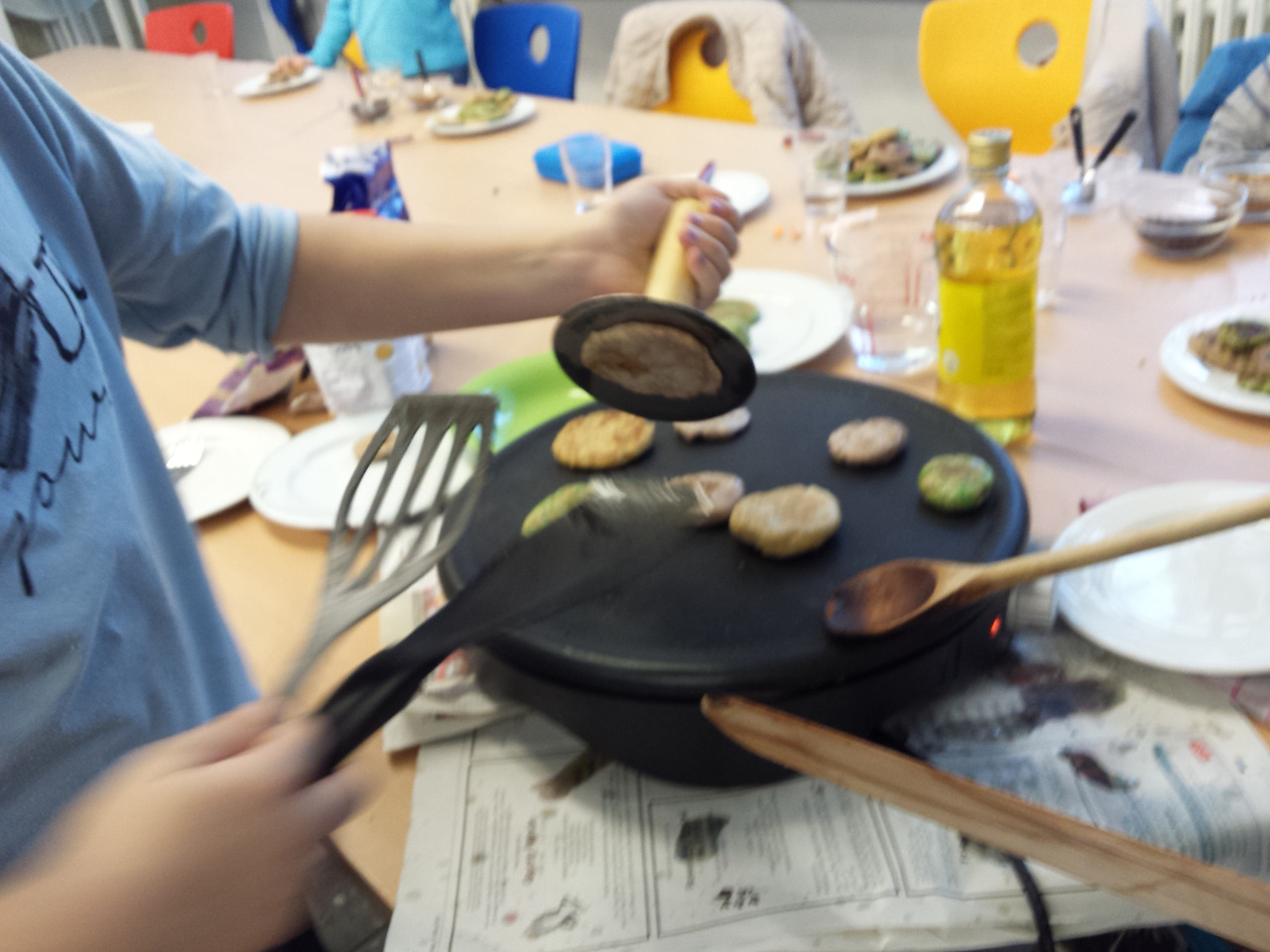 전기 크레페 팬 위에