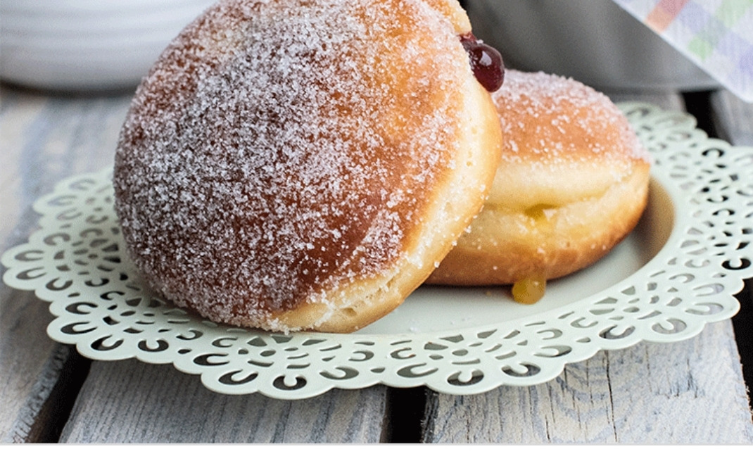 베를리너 도넛은 기름에 튀겨낸 폭신한 도넛 안에 과일잼이 들어가 있다.