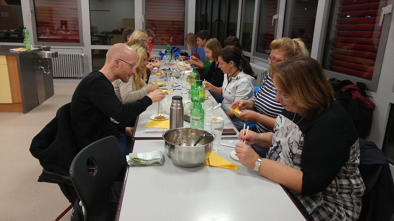 강습 외 에도 독일 사람들과 한국 음식을 만들어 나누어 먹는
