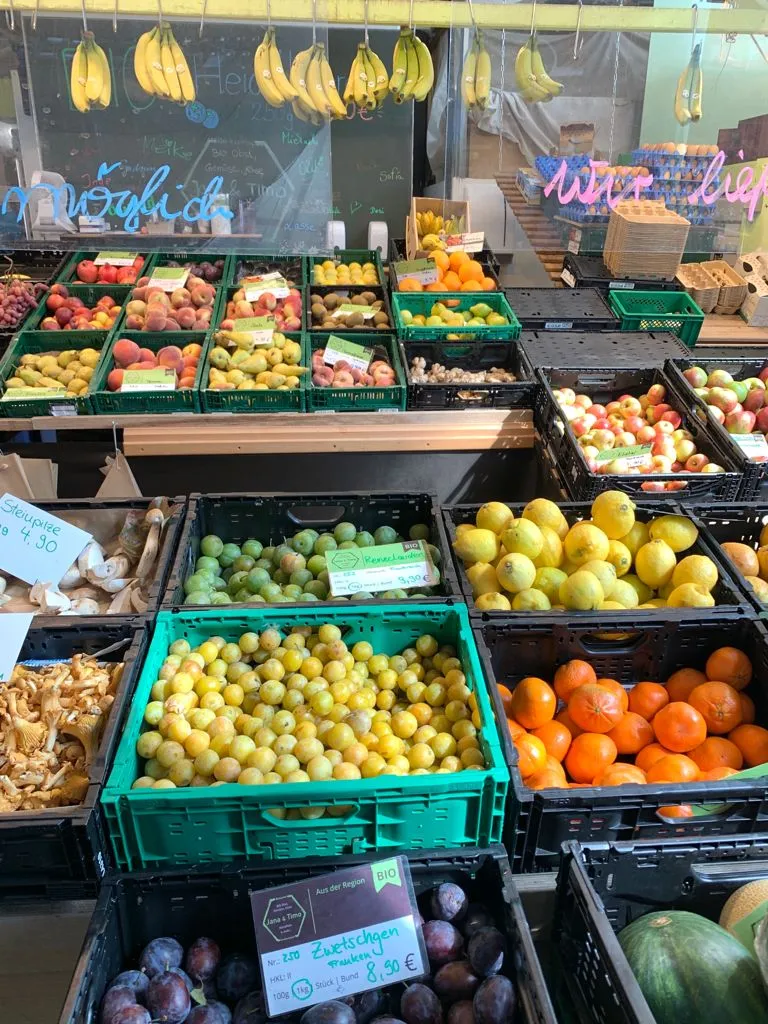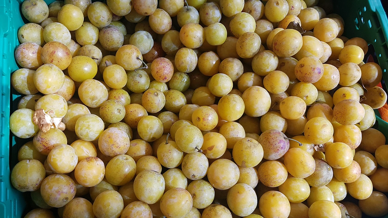 안네 아주머니 네 채소가게에서 달콤한 미라벨른을 넉넉히 담았다.