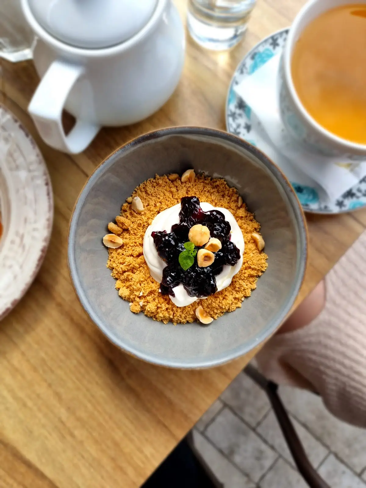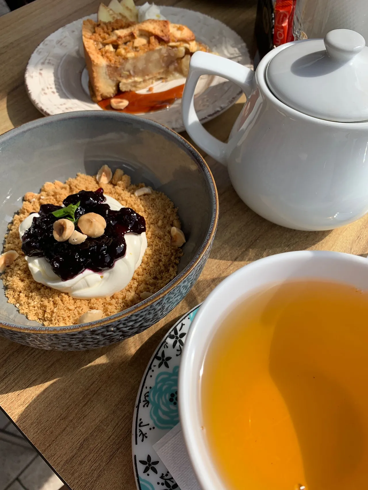 보드랍고 새콤달콤한 사과가 아삭아삭 씹히던 사과 케이크와 보기에는 곡식에 블루베리 잼과 땅콩이 들어간 그리스 식 요구르트 같은데 맛은 영락없는 치즈케이크이던 퍼먹는 헤쳐 모여 치즈케이크는 고소하고 맛났다.