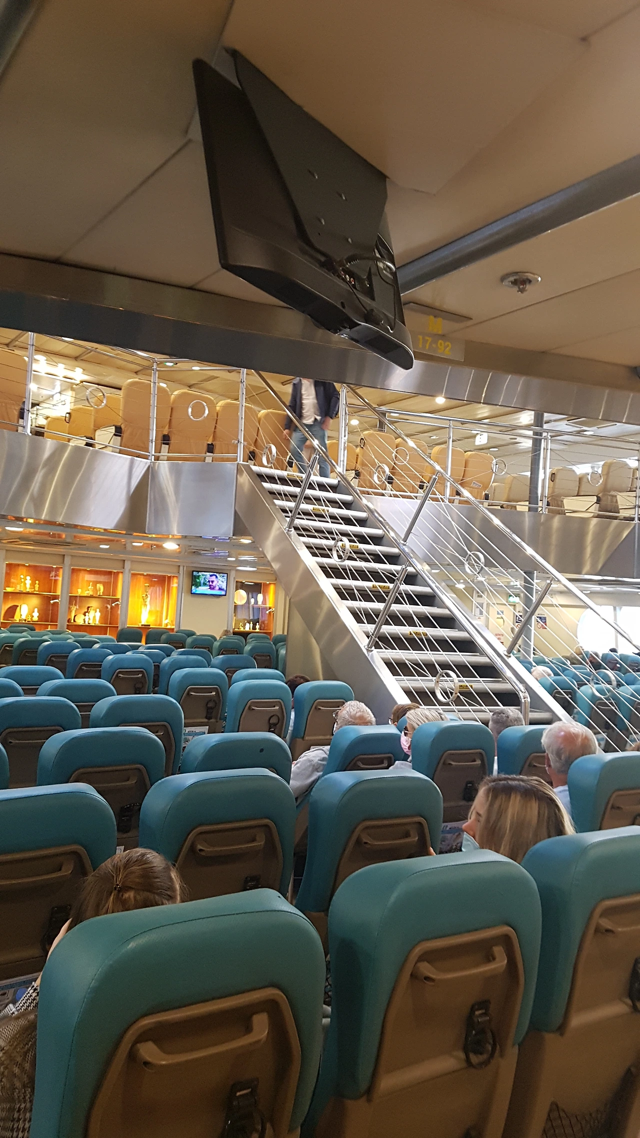 배 안의 의자는 우리가 그리스 크레타로 날아올 때 탔던 비행기 의자보다 훨씬 더 편하게 눕듯이 젖혀졌다.