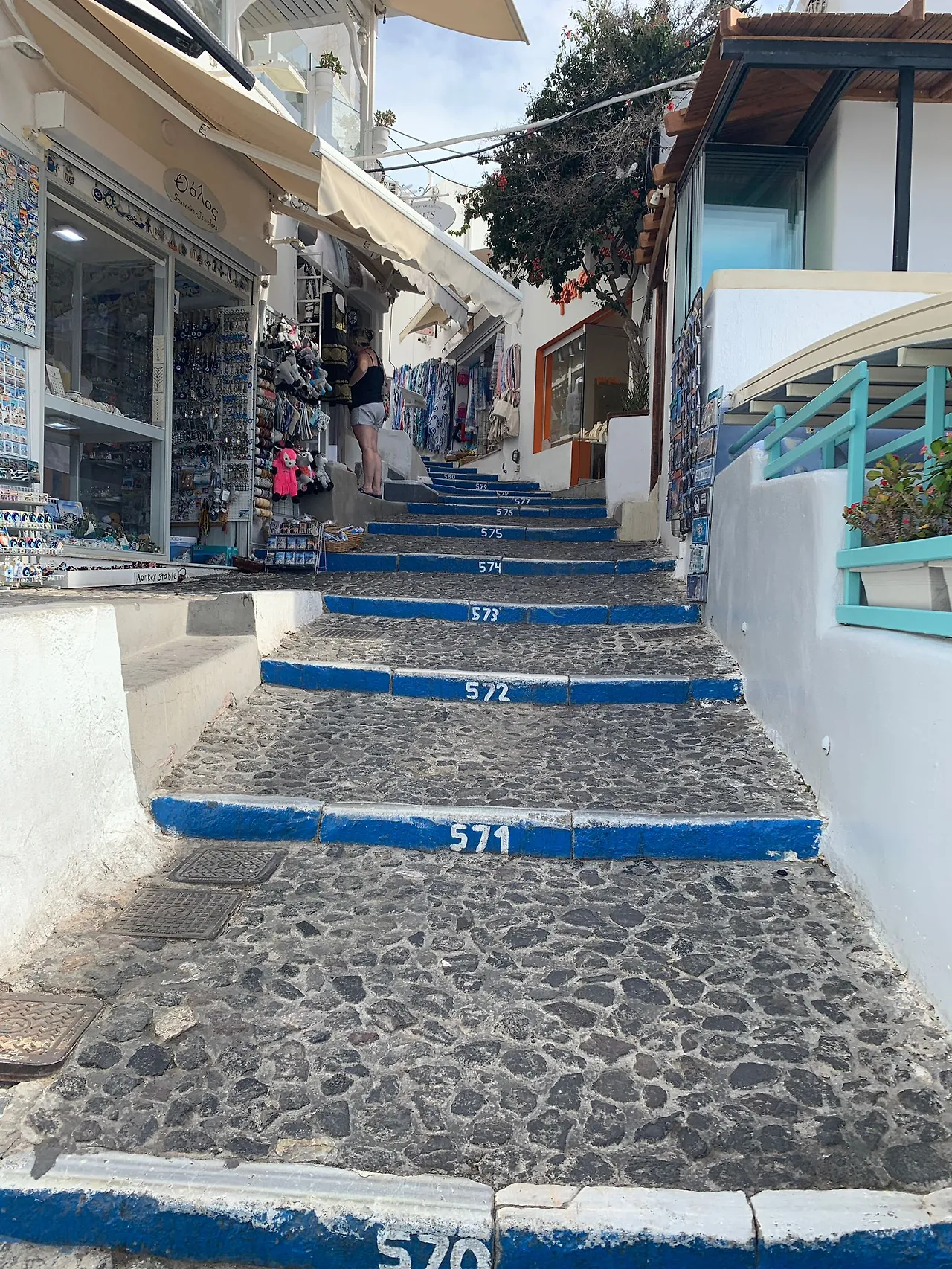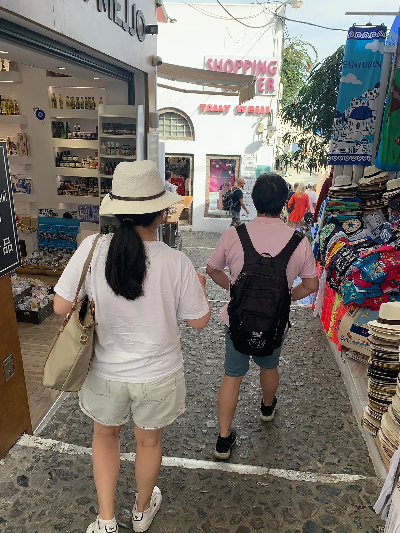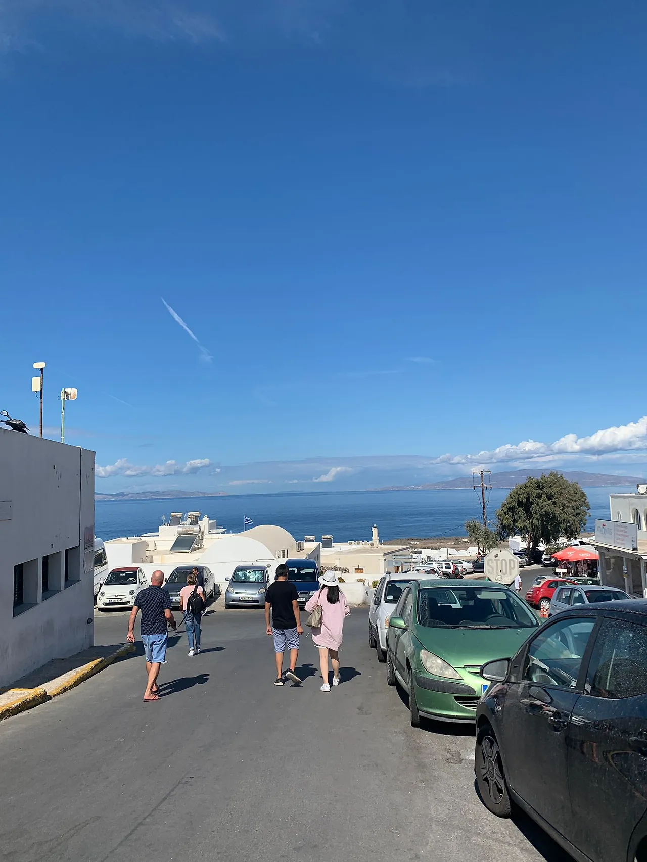 그런데 우리는 수영복을 가져오지 않았다. 산토리니라는 글자가 턱 하고 박혀 있는 거기서만 입을 수 있는 샬랄라 한 옷과 수영복을 조달할 수도 있겠으나 굳이 산토리니에서 해수욕을? 게다가 버스를 타고 더 가야 한다 했다 1번 패스, 그리고 2번은 화산섬으로 갈 사람, 아이들 장난감 레고와 비슷하게 생긴 나무배를 타고 화산 터진 곳으로 간다는데 나무배 타고 에서 2번 탈락 또 배? 그리고 사실 그전날 지진도 경험했는데 아무리 화산 터진 것이 옛날 옛적 이라지만 또 언제? 일지 모르는 화산까지 가서 터지나 안 터지나 직접 확인하지 않아도 될 것 같았다. 3번 산토리니 시내에서 여유 있는 시간을 보낼 사람, 우리는 뭘 더 타지 않아도 그 자리에 있다 오면 되는 3번을 기쁜 마음으로 선택했다.