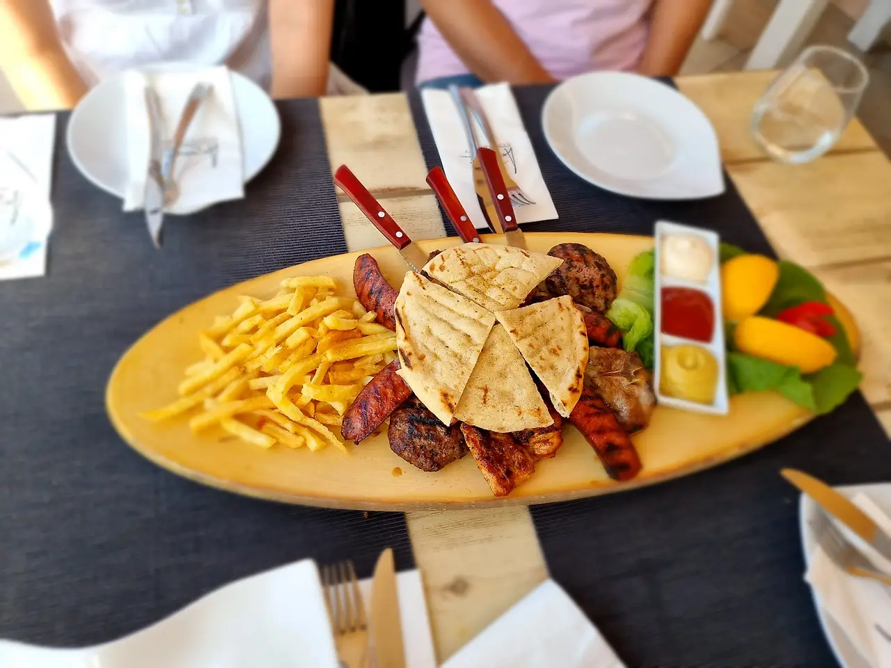 그리스식 모듬 그릴, 일명 빵 밑에 고기 있다!