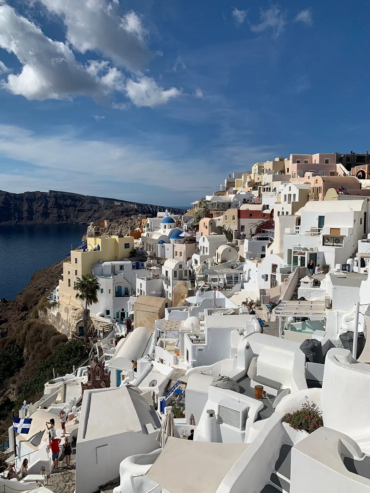 산토리니섬은 여러 개의 마을로 이루어져 있는데 그중 아름다운 절경 특히 일출로 유명하다고 했다.