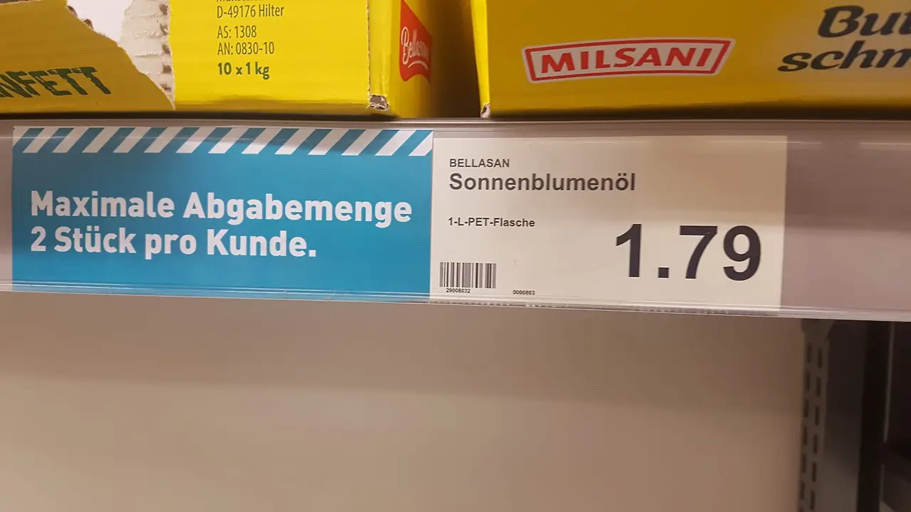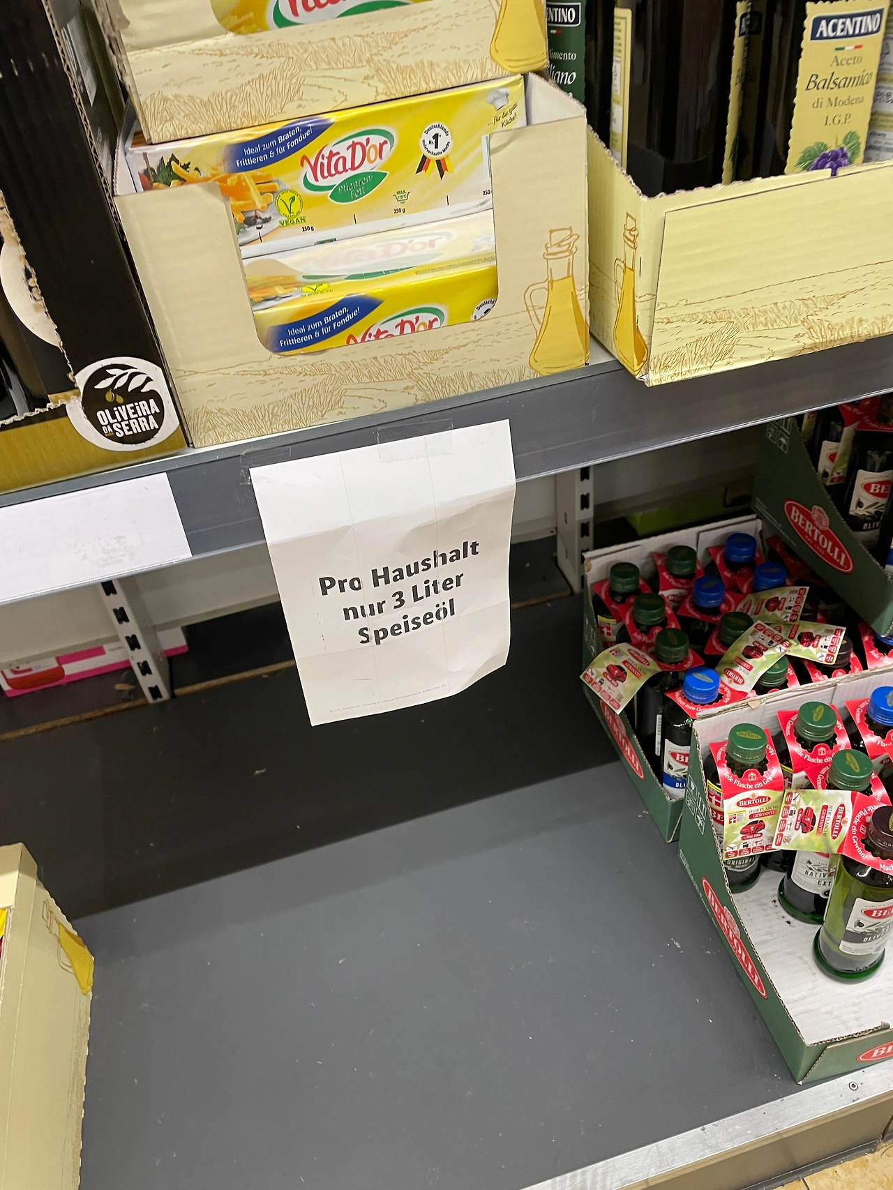 식용유가 얼마나 귀하냐 하면 오늘자 22년 4월 3일자 지역 신문 HNA에서는 니더작센주의 한 마트의 모습을 기사화했다.