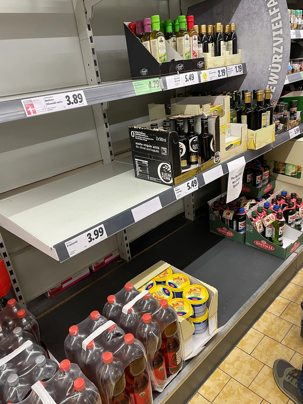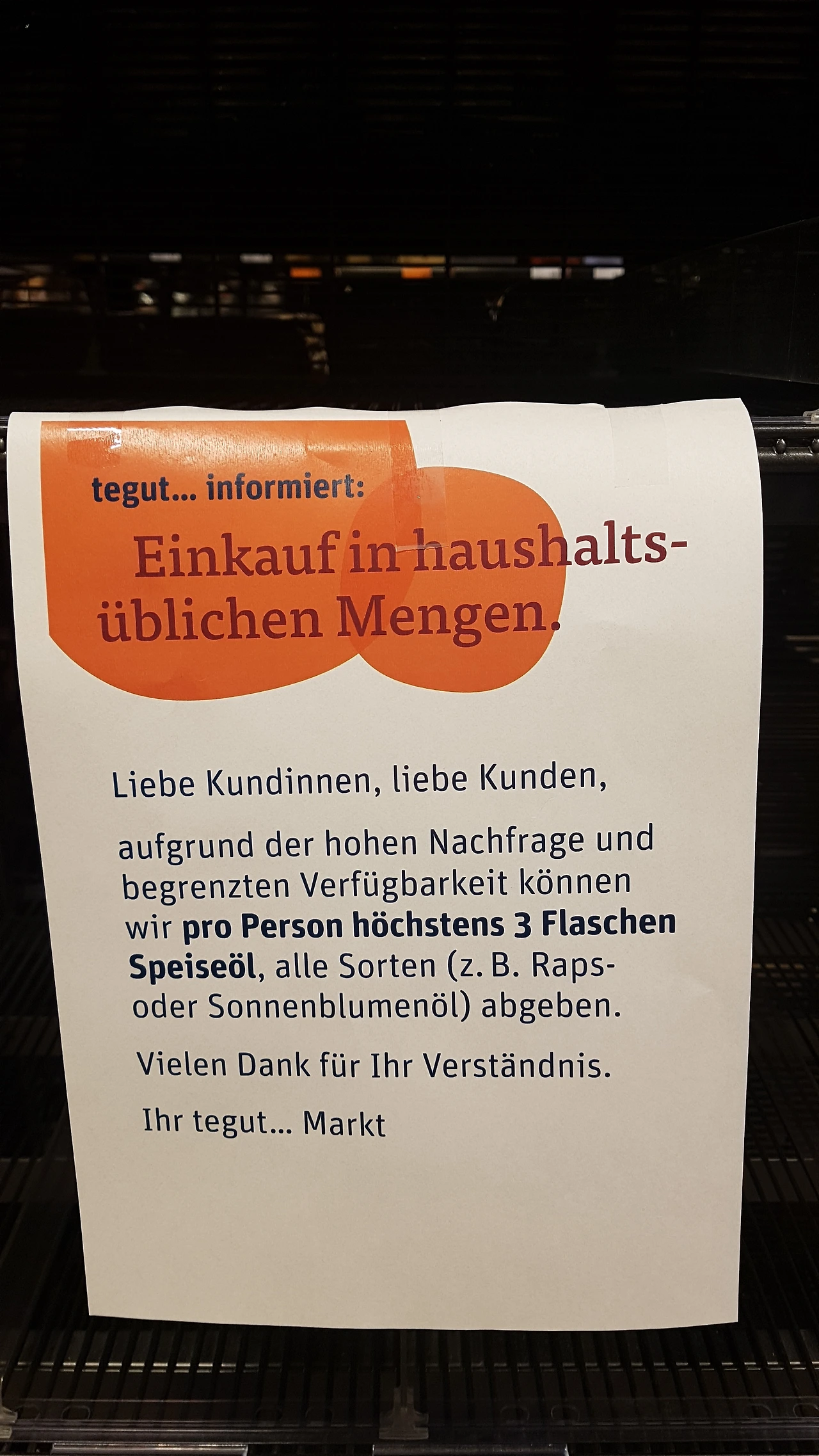 어느 날 갑자기 우크라이나에서 전쟁이 나고 자동차 기름 값이 하룻밤 사이에 천정부지 올라가서 사람들이 차 세워 두고 자전거를 타고 다니기 시작할 때 혹시나.. 하던 생필품 사재기가 독일에서 다시 시작되었다.