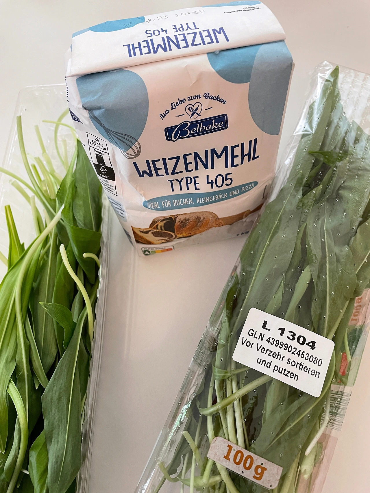 계산대에 명이 나물을 비롯한 채소 몇 가지와 밀가루 두팩을 얹어 두고 계산을 기다렸다.