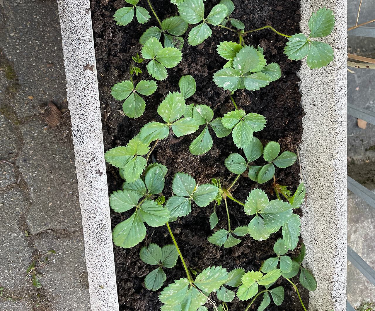 따뜻하던 3월 어느날 잡초만 무성 하던 작고 길죽한 돌 화분 하나를 정리 해 정원에서 햇빛이 가장 잘 드는 곳에 화분 가득 작고 여린 초록의 딸기 모종을 심었다.