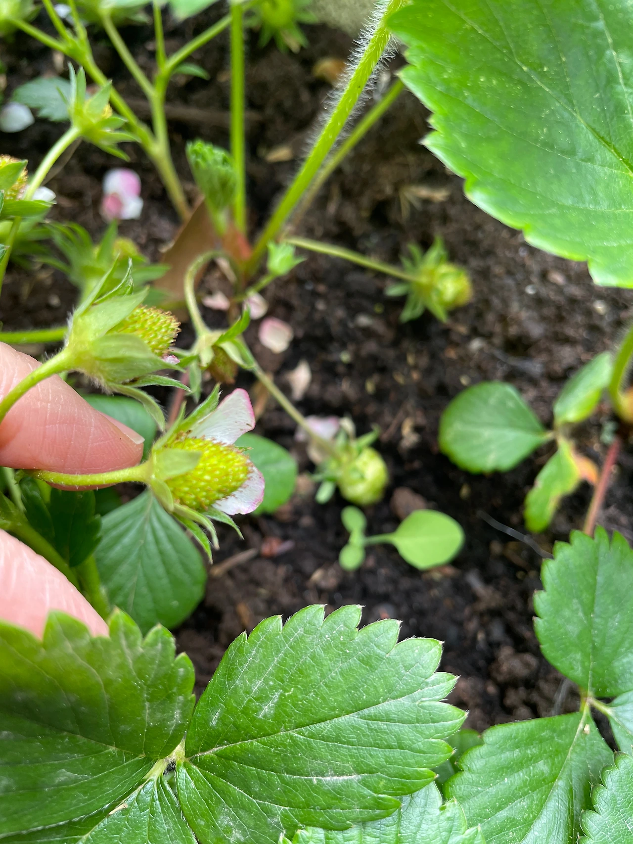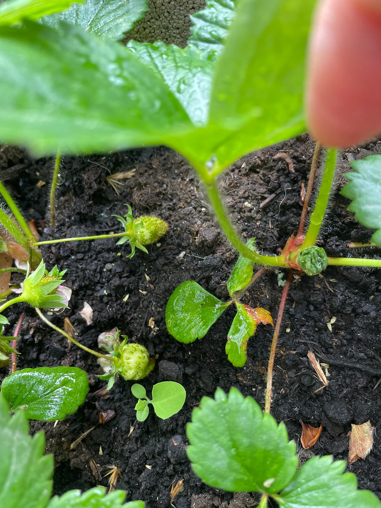 모종을 심은지 7주가 지났을 뿐인데 작지만 어떻게 보아도 딸기 모습을 한 미니 딸기가 생겼다는 것이 마냥 신기하다.