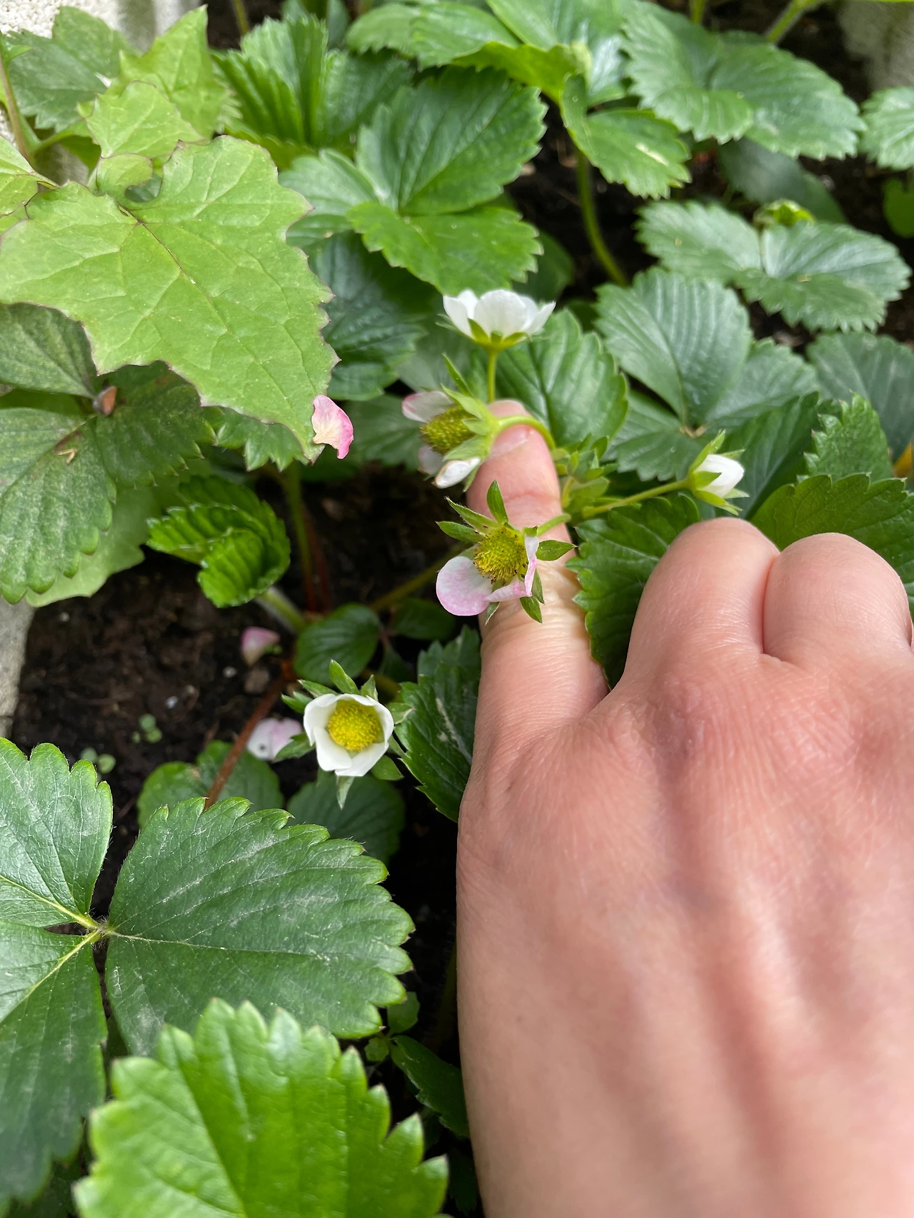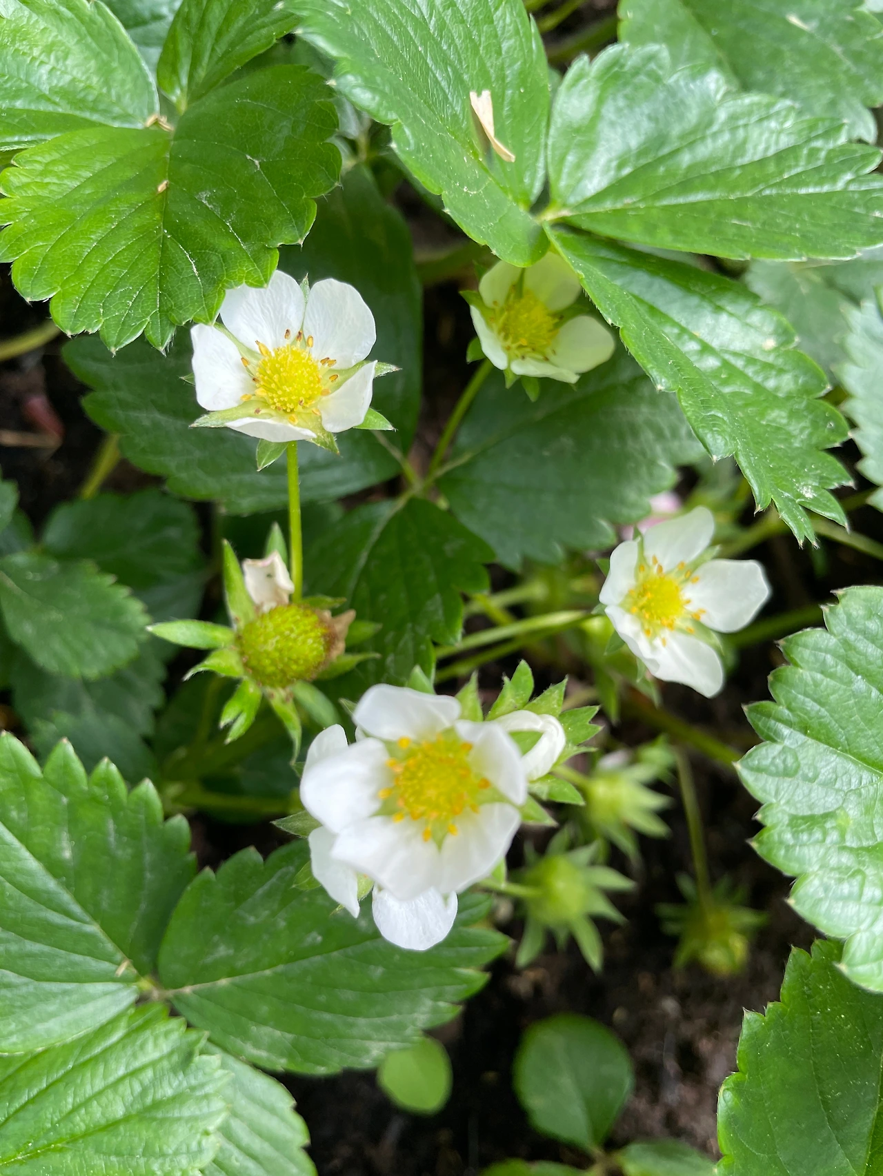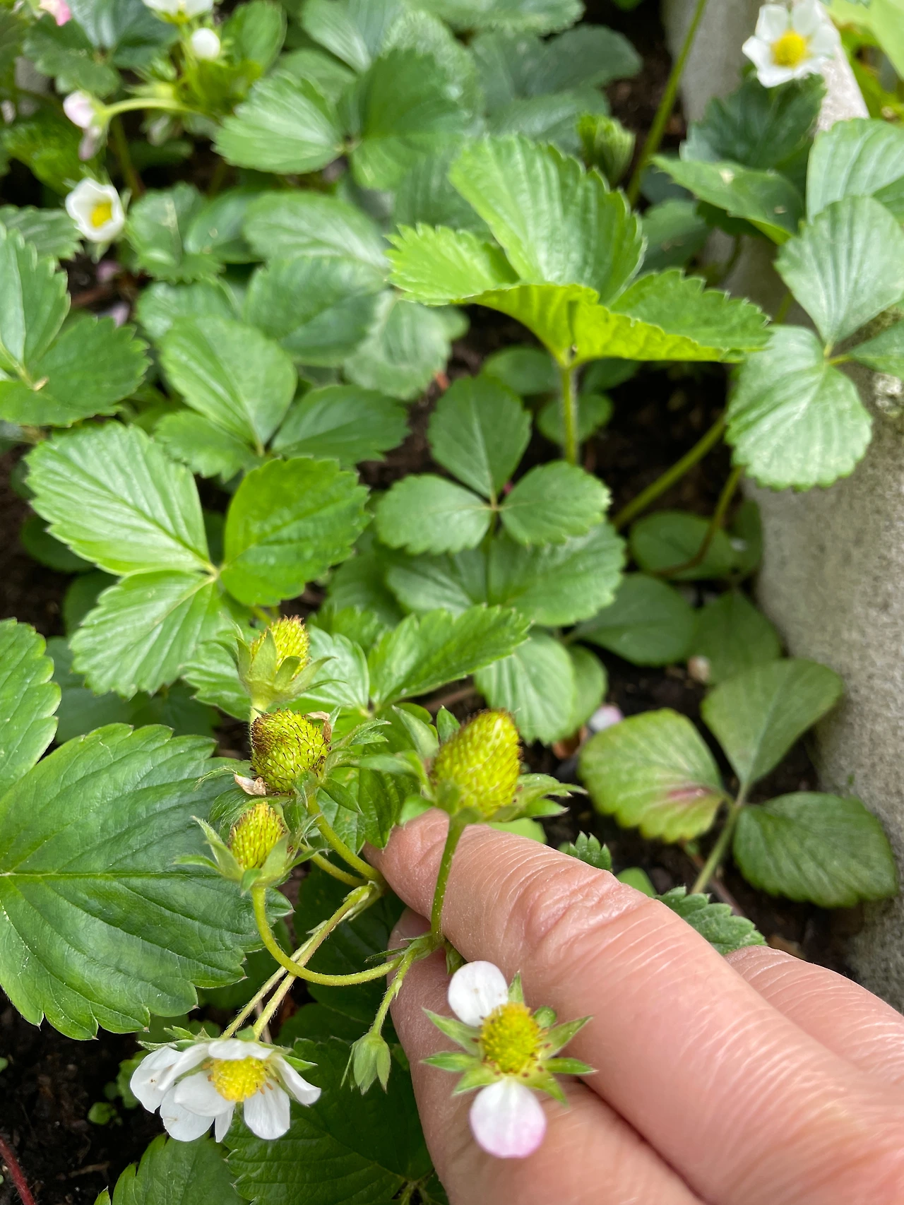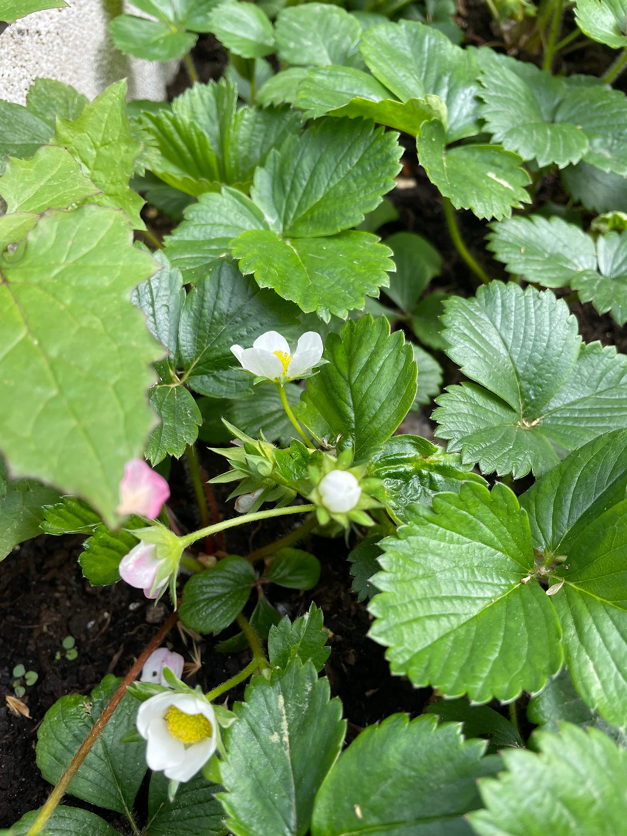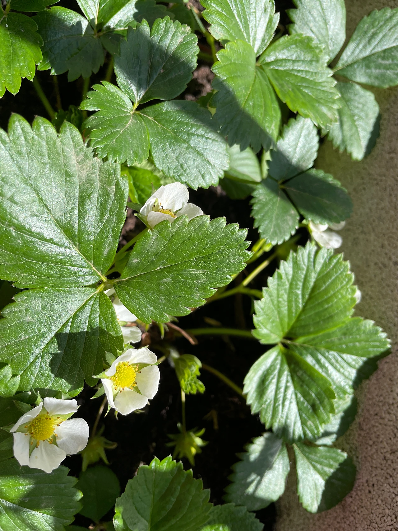 작고 여린 초록의 딸기 잎들이 굵고 커다란 짙은 초록색으로 자라나면 그 사이로 동그란 하얀 꽃들이 팝콘 터지듯 피어 난다.
