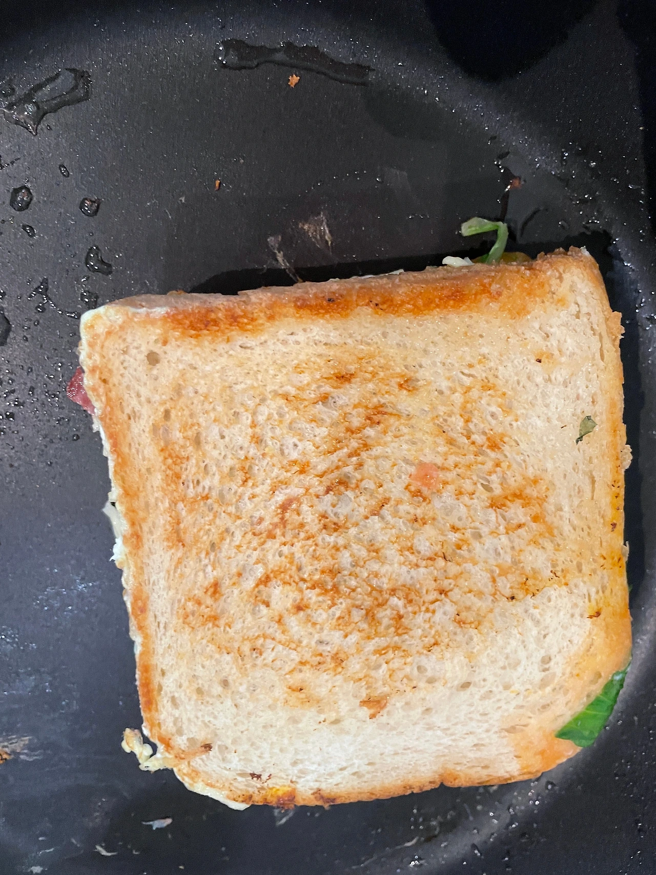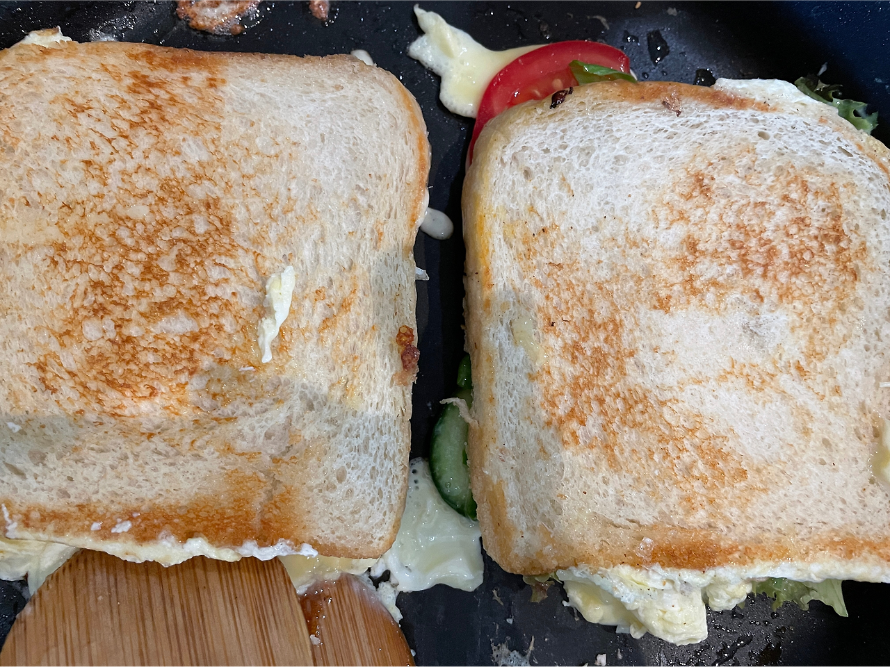토스트 양면을 합쳐서 앞뒤로 구워 내면 끝!