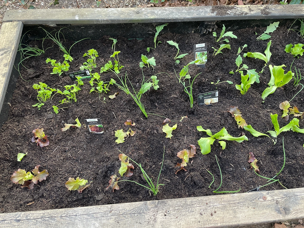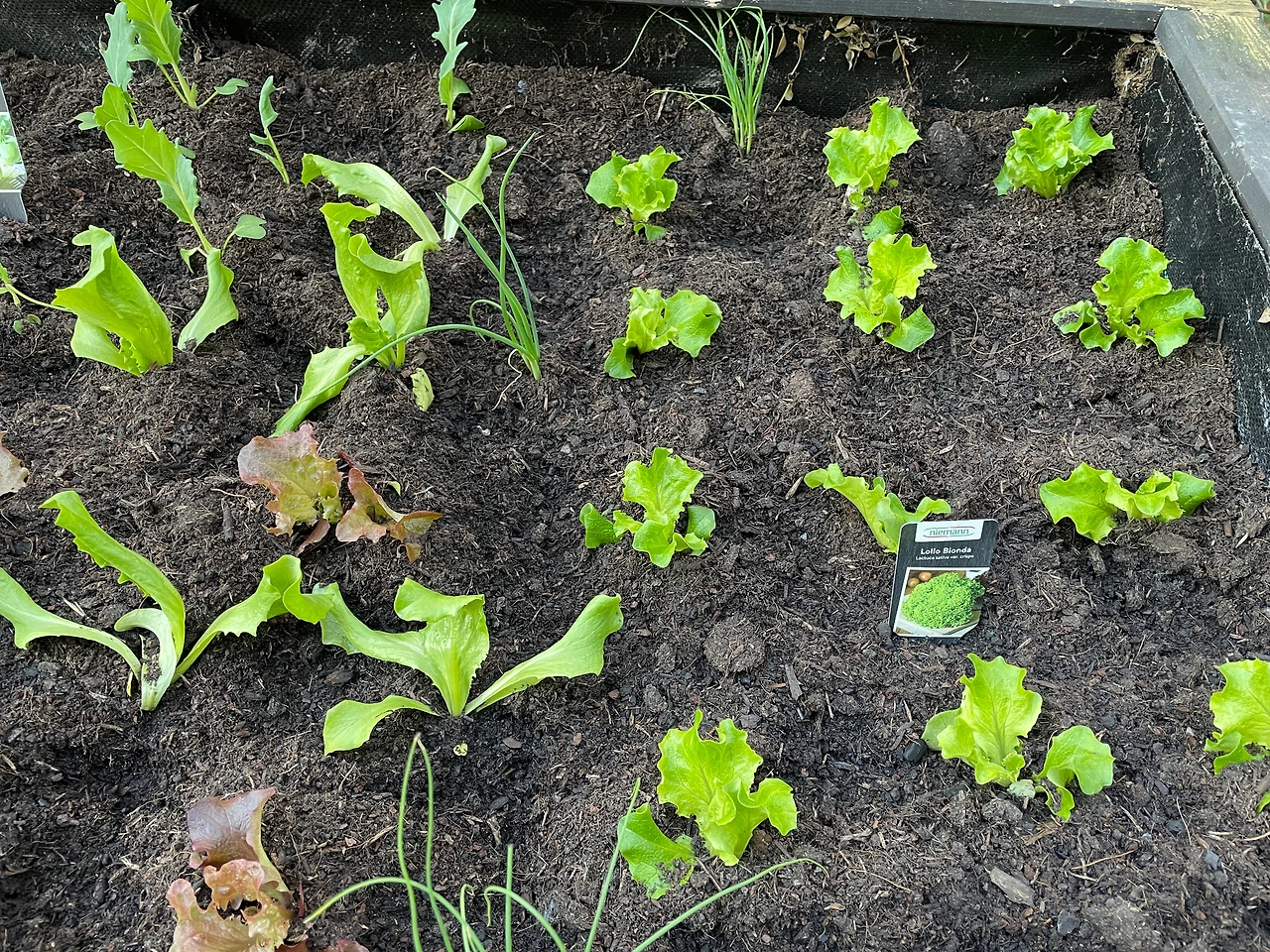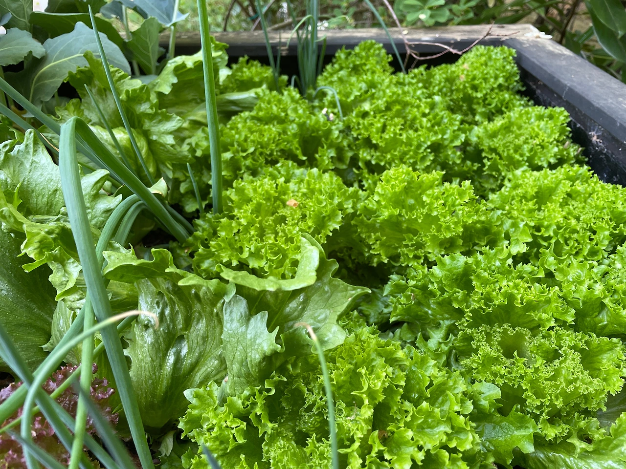적상추, 아삭이 상추, 청상추 세 가지와 파슬리 등의 허브, 양파, 그리고 콜라비를 심었다.