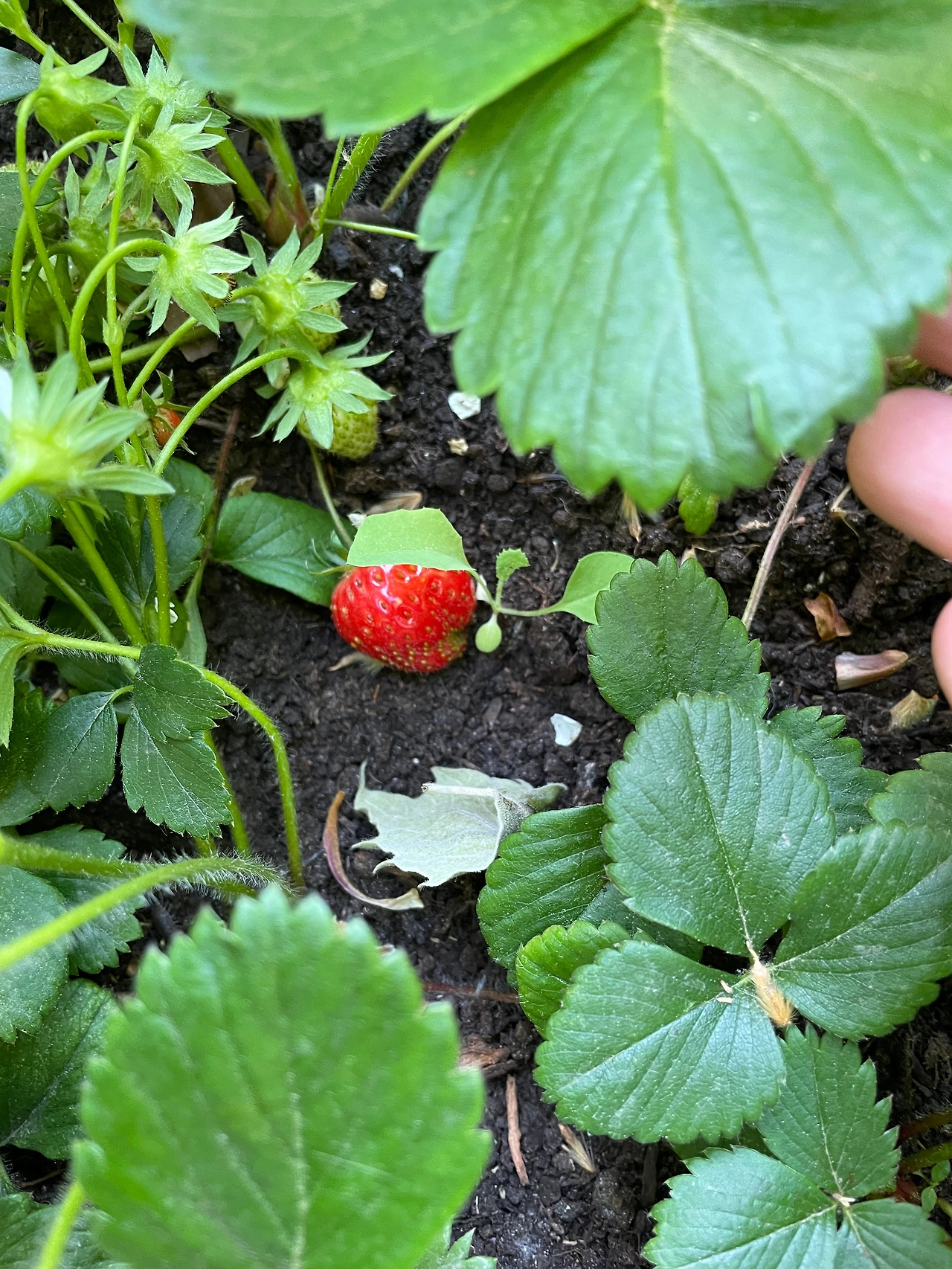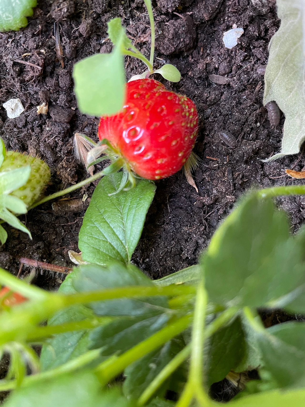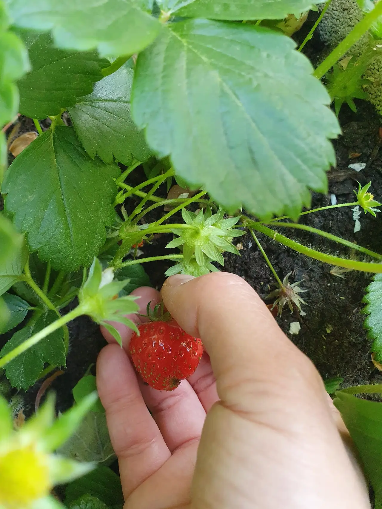 거기다가 채소 텃밭 옆 미니 딸기 밭에 흰꽃이 지고 연두색 품고 조롱조롱 달리던 딸기가 드디어 빨갛게 익었다.