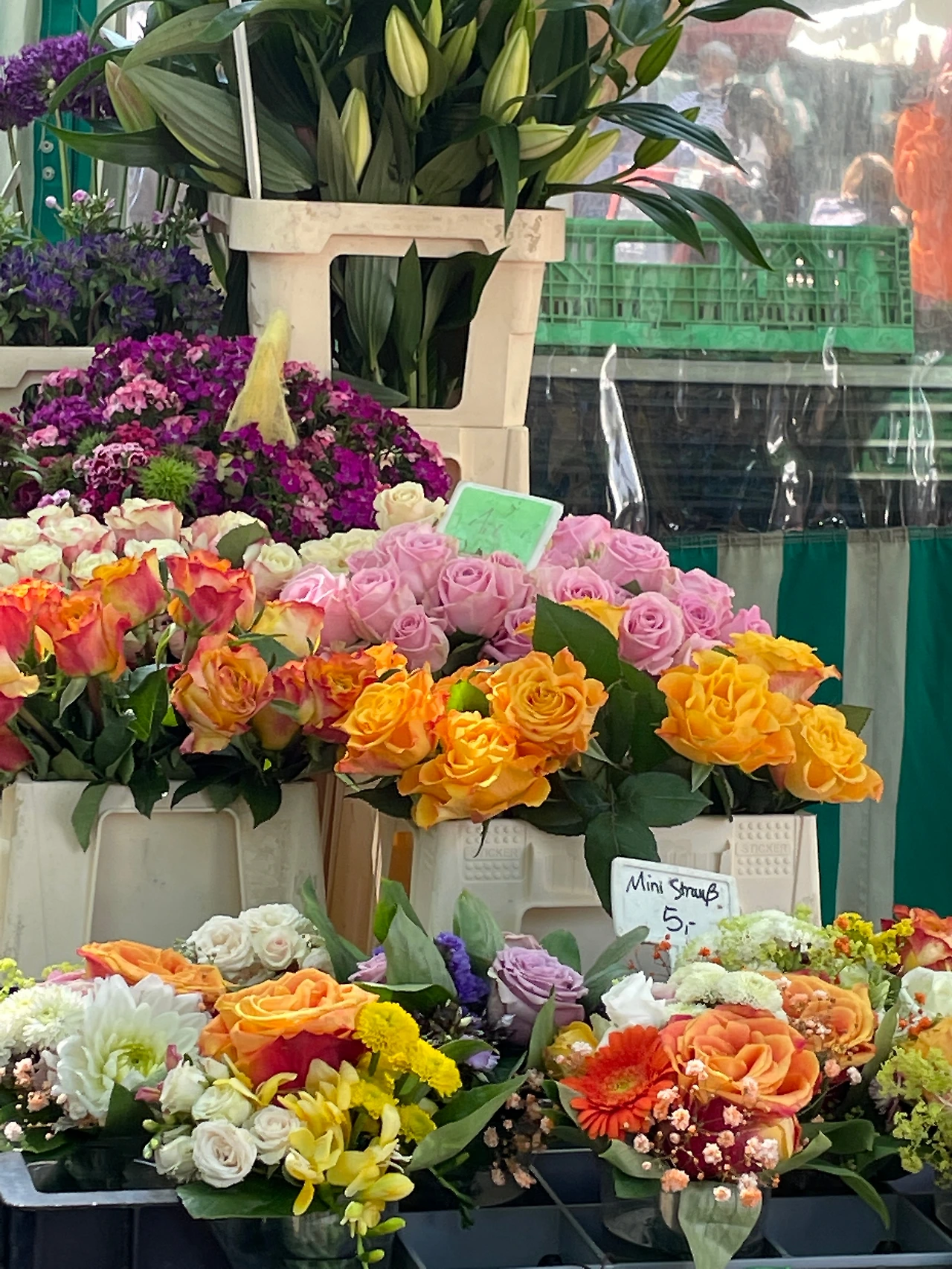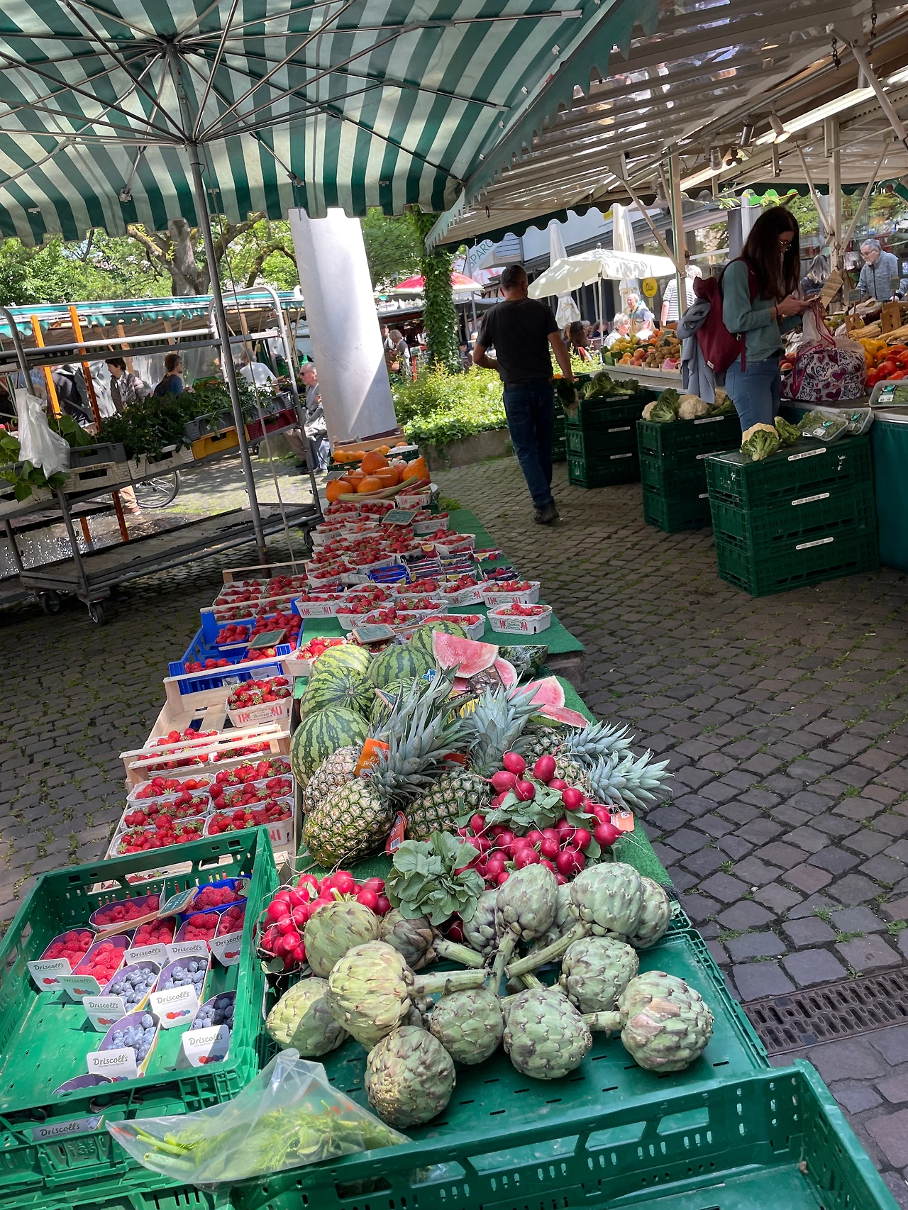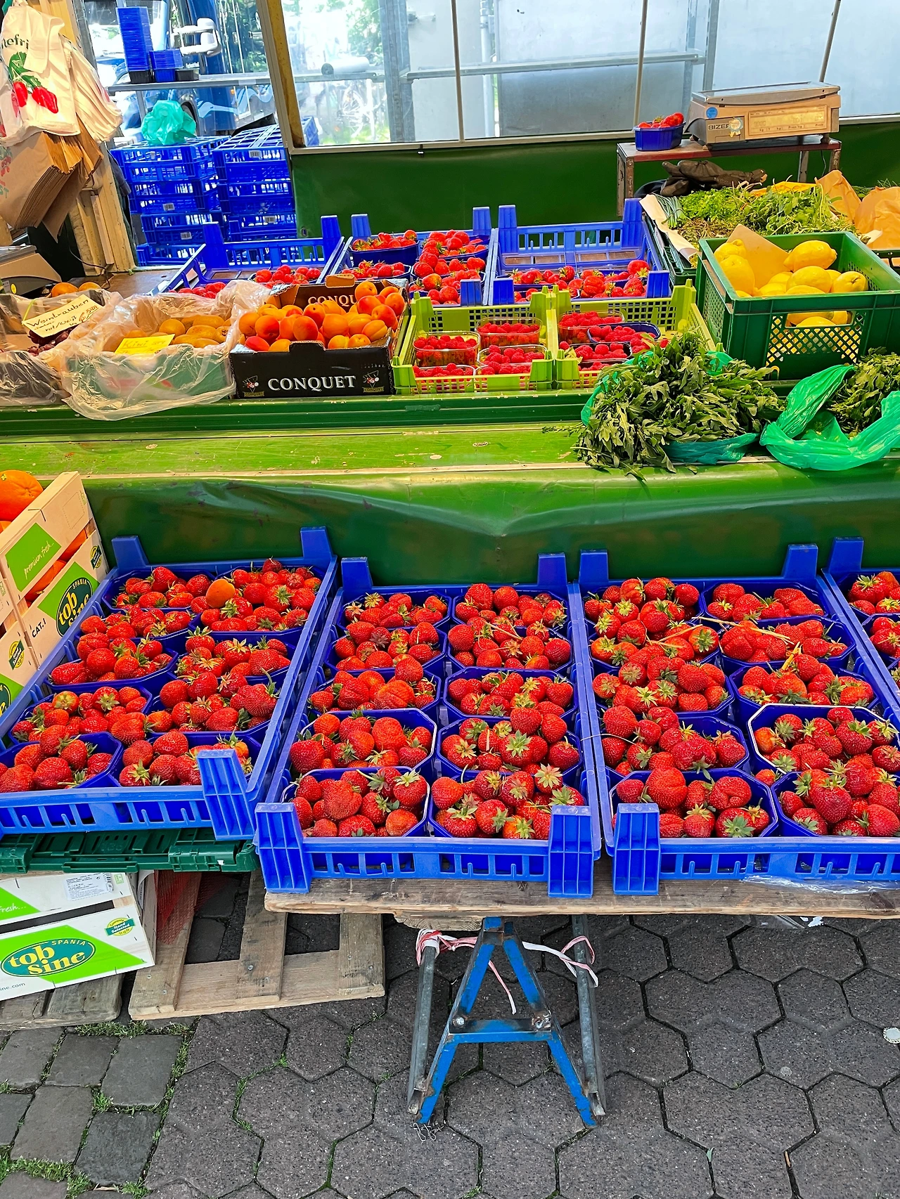 제철 채소와 과일이 뿜어내는 향긋함과 생선가게의 짭조름한 바다내음, 치즈 가게에서 나는 꼬리 한 냄새 그리고 갗구워낸 고소한 빵 냄새가 뒤섞여 동네 장에 와 있음을 실감케 한다.