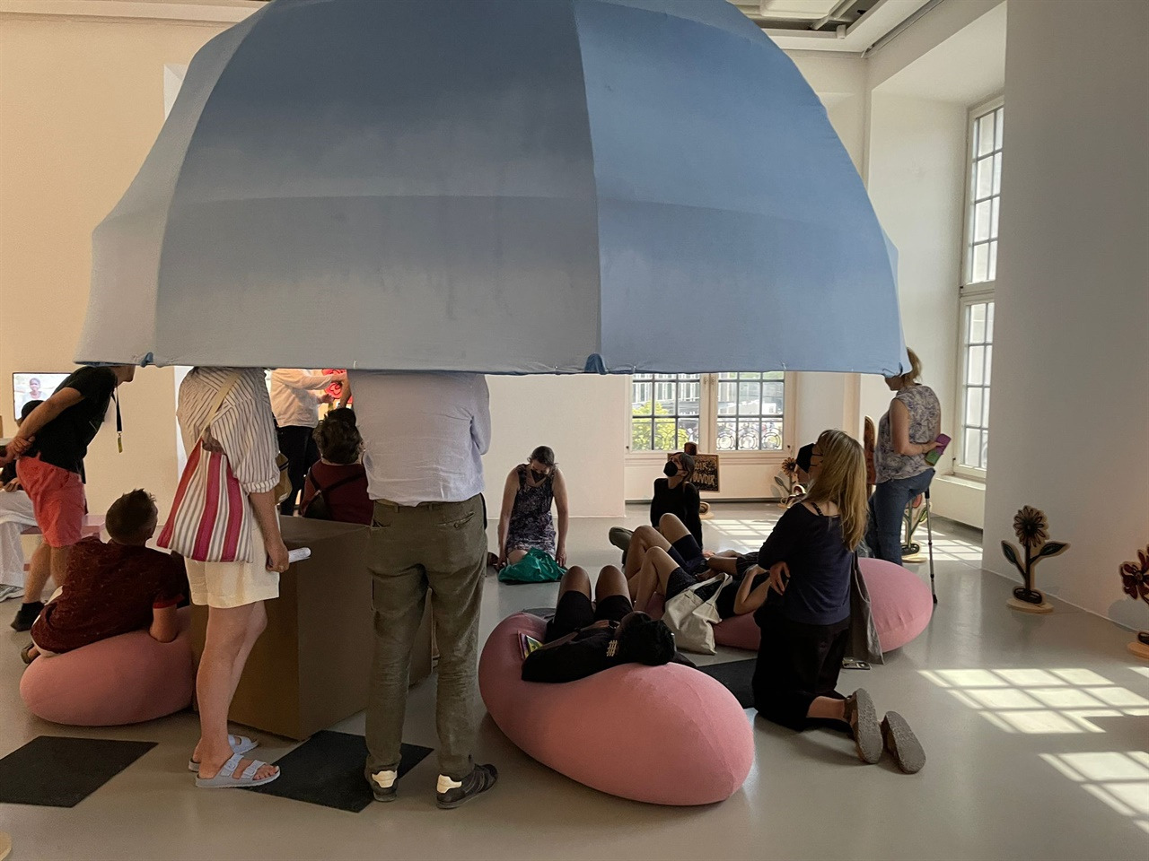 예를 들어 매인 전시관인 Friedrichcianum 안에는 특별한 교실이 있다.나무 또는 병을 담는 박스 등으로 만든 의자 위를 사람들은 누워서 편히 쉬다 간다. 마치 학창 시절로 돌아간듯 나란히 앉아서 이야기를 나눈다.